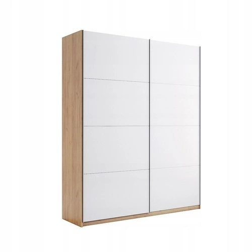 Szafa przesuwna Tissa 150 cm to połączenie nowoczesnej elegancji z praktycznym rozwiązaniem do przechowywania. Wykonana w białym połysku z akcentem naturalnego dębu, oferuje przestronne wnętrze o wysokości 211 cm, szerokości 150 cm i głębokości 61 cm. Dwie pojemne półki oraz drążek na ubrania sprawiają, że jest idealna do sypialni lub garderoby, pozwalając utrzymać porządek i zorganizować przestrzeń według własnych potrzeb.