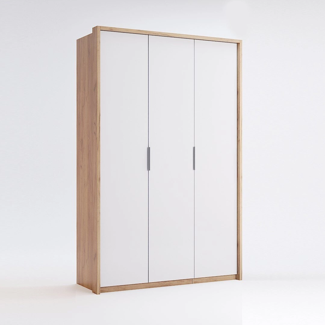 Szafa Tissa o szerokości 140 cm, w wykończeniu dąb craft/biały połysk, to idealne rozwiązanie dla nowoczesnych wnętrz, charakteryzujących się minimalistycznym stylem. Kontrastowe barwy oraz eleganckie białe drzwi z połyskiem nadają jej wyjątkowego uroku.
