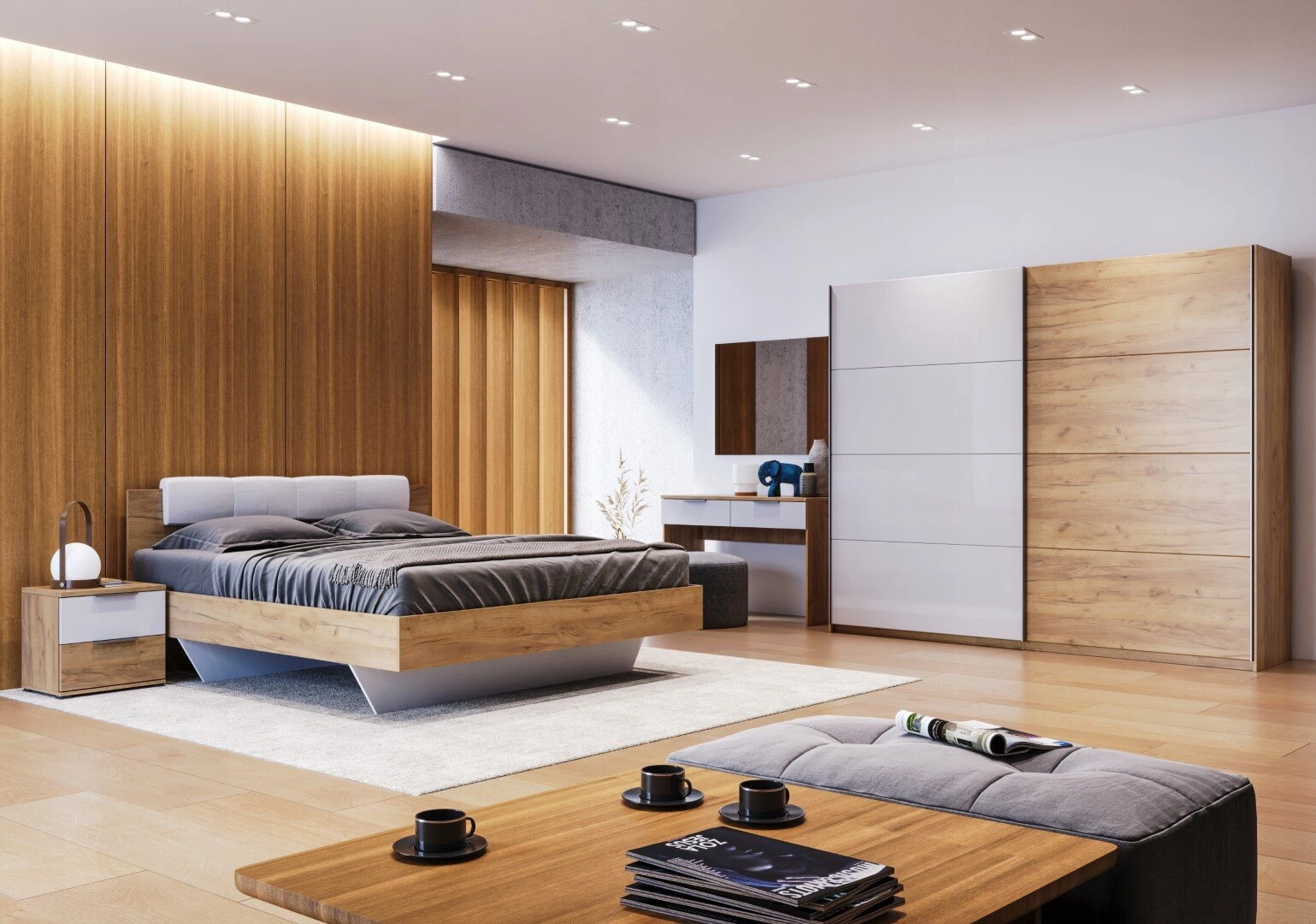 - Uniwersalna kolorystyka dąb craft/biały połysk – pasuje do nowoczesnych i skandynawskich aranżacji