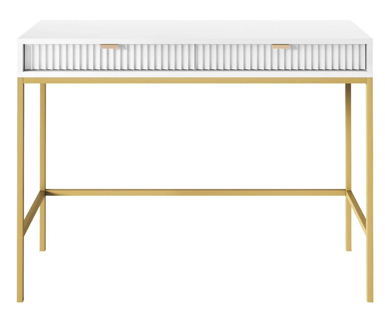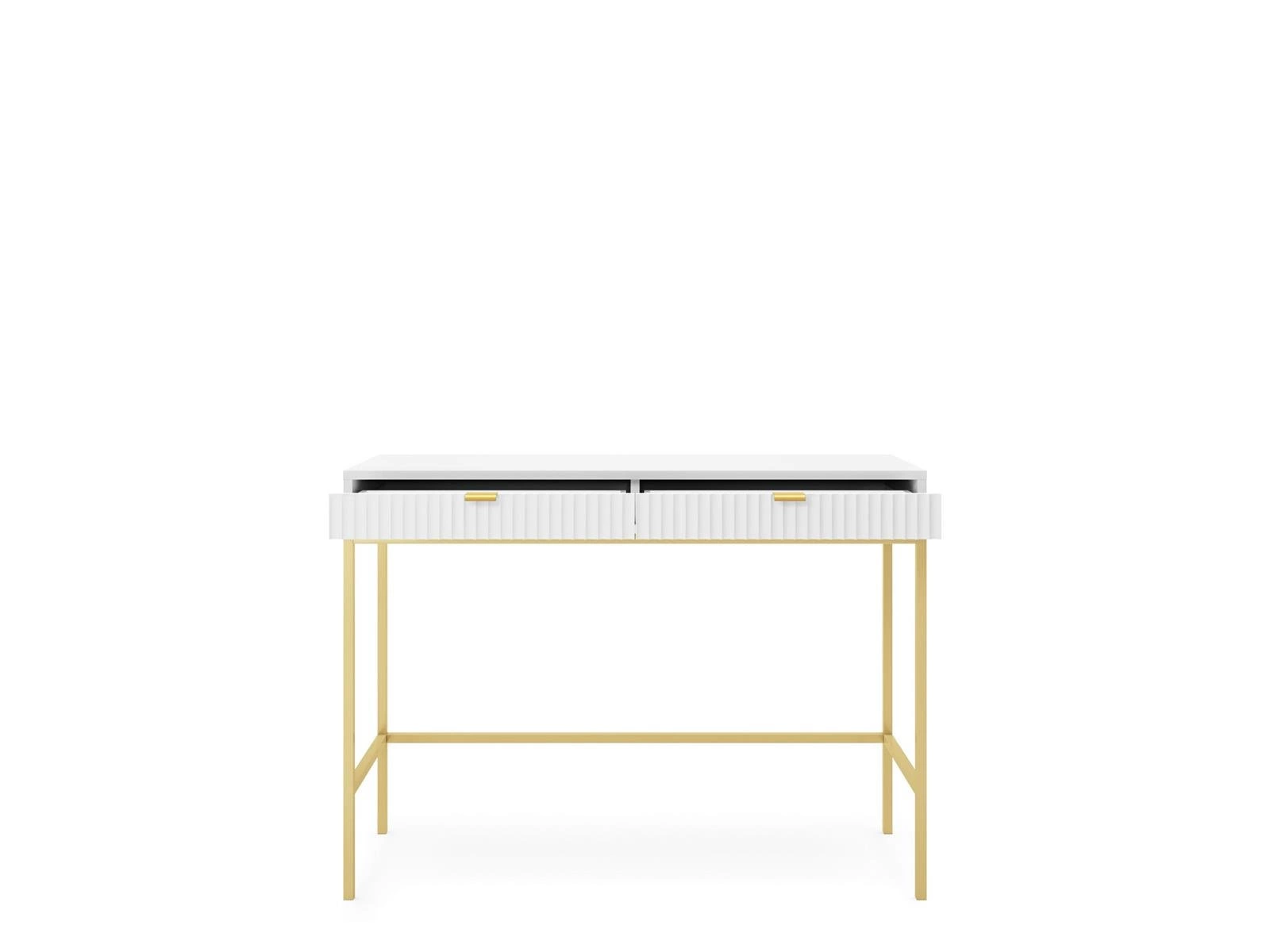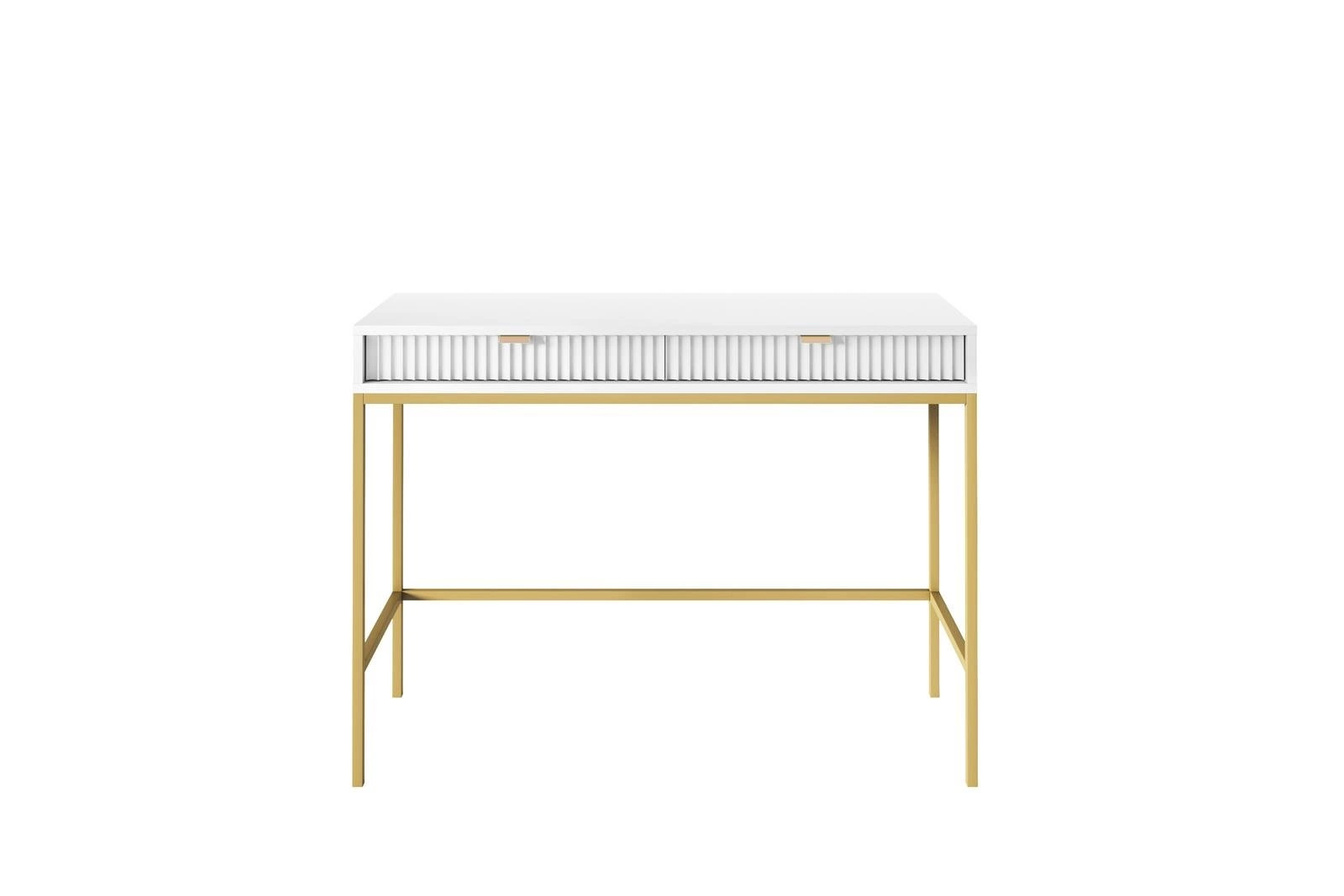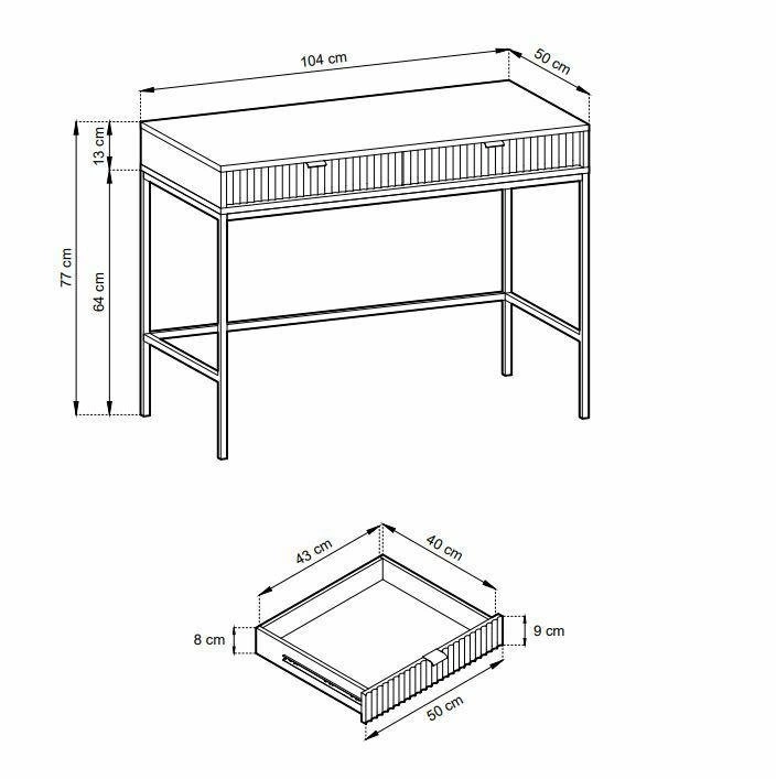 Szukałeś idealnego połączenia stylu i funkcjonalności? Nie szukaj dalej niż Toaletka Delicious! Zachwycająca toaletka zapewni nie tylko ponadczasową estetykę, ale także mnóstwo możliwości przechowywania. Wykonana z ryflowanymi frontami szuflad, które są pięknie podkreślone aluminiowym uchwytem w kolorze złotym, toaletka natychmiast ulepszy wygląd każdej przestrzeni życiowej! Niestandardowy stolik o szerokości 104 cm i głębokości 50 cm zapewnia wystarczająco dużo miejsca do schludnego przechowywania ładowarki do telefonu, kosmetyków, kluczy i innych rzeczy, jednocześnie utrzymując wszystko w porządku - sprytny styl w najlepszym wydaniu! Ponadto metalowe nogi podstawy zapewniają niezawodną wytrzymałość, a wyższy profil umożliwia wygodne odkurzanie i wycieranie pod nim, zapewniając najwyższy spokój ducha. Wyróżnij się z tłumu dzięki Delicious Toiletry - oszałamiającemu projektowi, który z pewnością wzbudzi podziw!