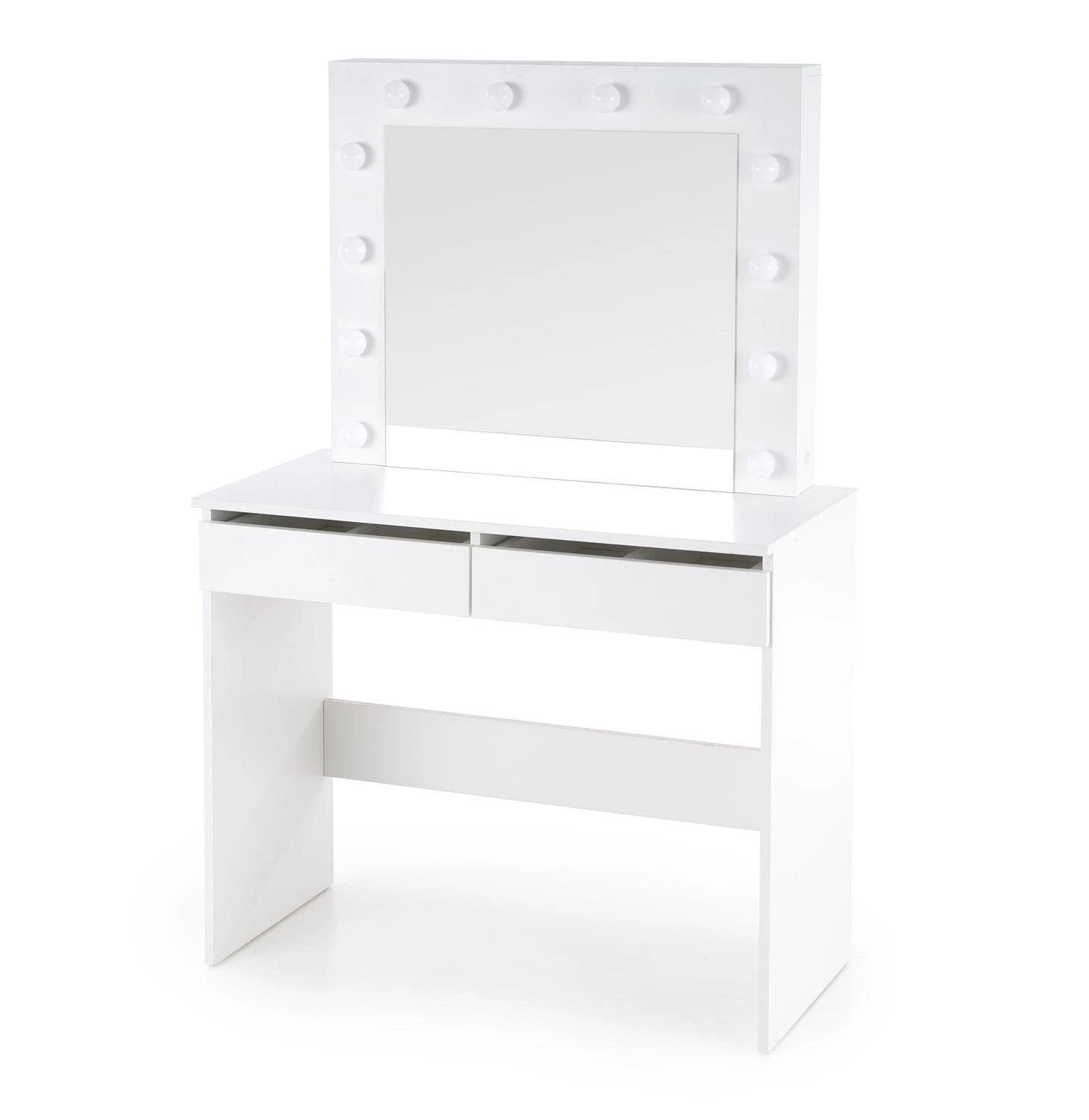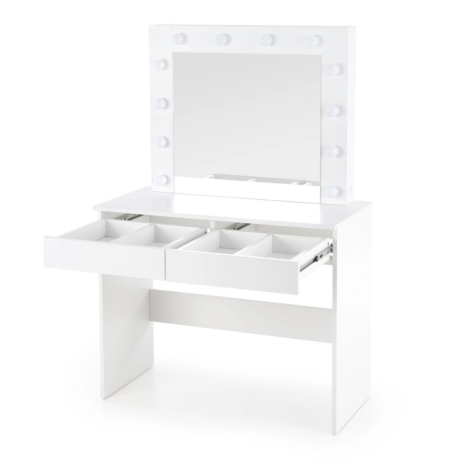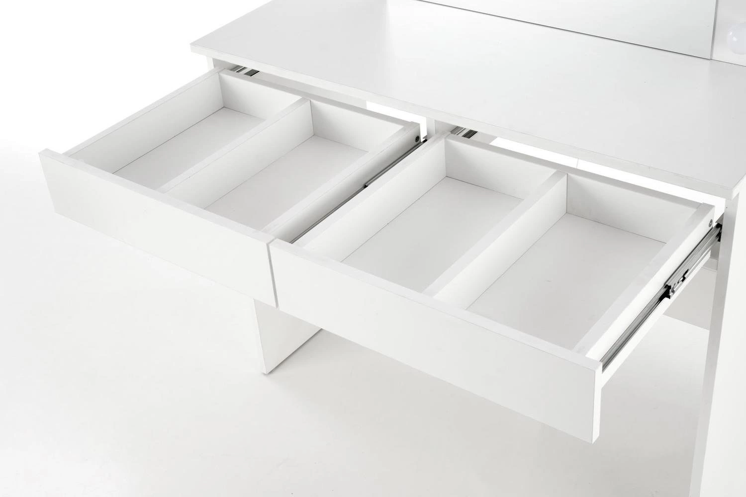 Najważniejszym elementem toaletki jest oczywiście duże lustro, które zostało zintegrowane z meblem. To nie tylko praktyczne rozwiązanie, ale również designerska ozdoba, która odbija światło i powiększa optycznie przestrzeń. Dodatkowo, na górnej krawędzi lustra znajduje się oświetlenie LED, które zapewnia doskonale rozproszone światło. Dzięki niemu, wykonywanie makijażu, golenie czy układanie fryzury staje się prostsze i bardziej precyzyjne.