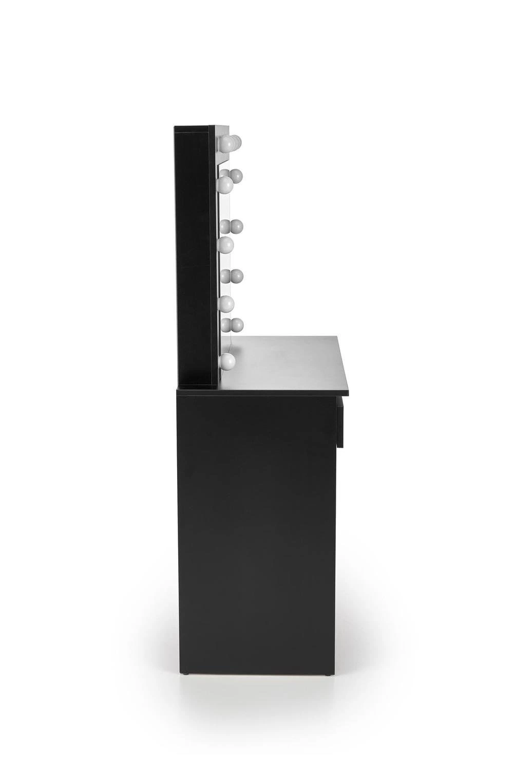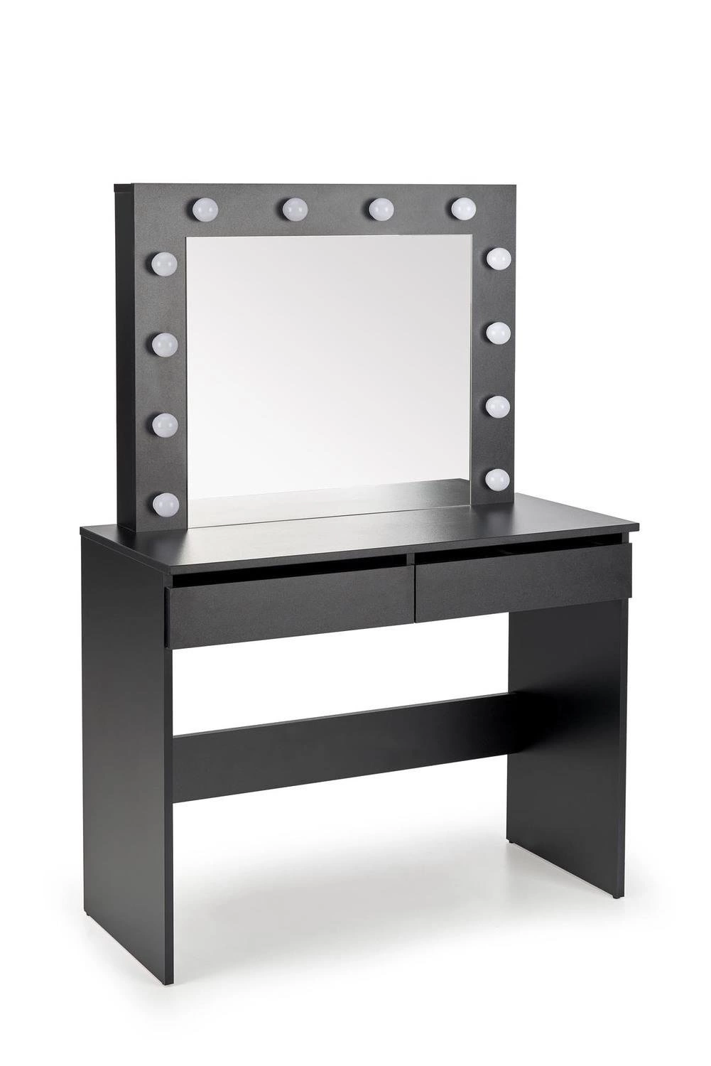 Oświetlenie LED umieszczone na krawędzi lustra dostarcza doskonale rozproszone światło, dzięki czemu wykonywanie makijażu czy golenie staje się prostsze i bardziej precyzyjne. Dwie pojemne szuflady pozwalają na przechowywanie kosmetyków i innych niezbędnych przedmiotów, utrzymując porządek wokół toaletki.