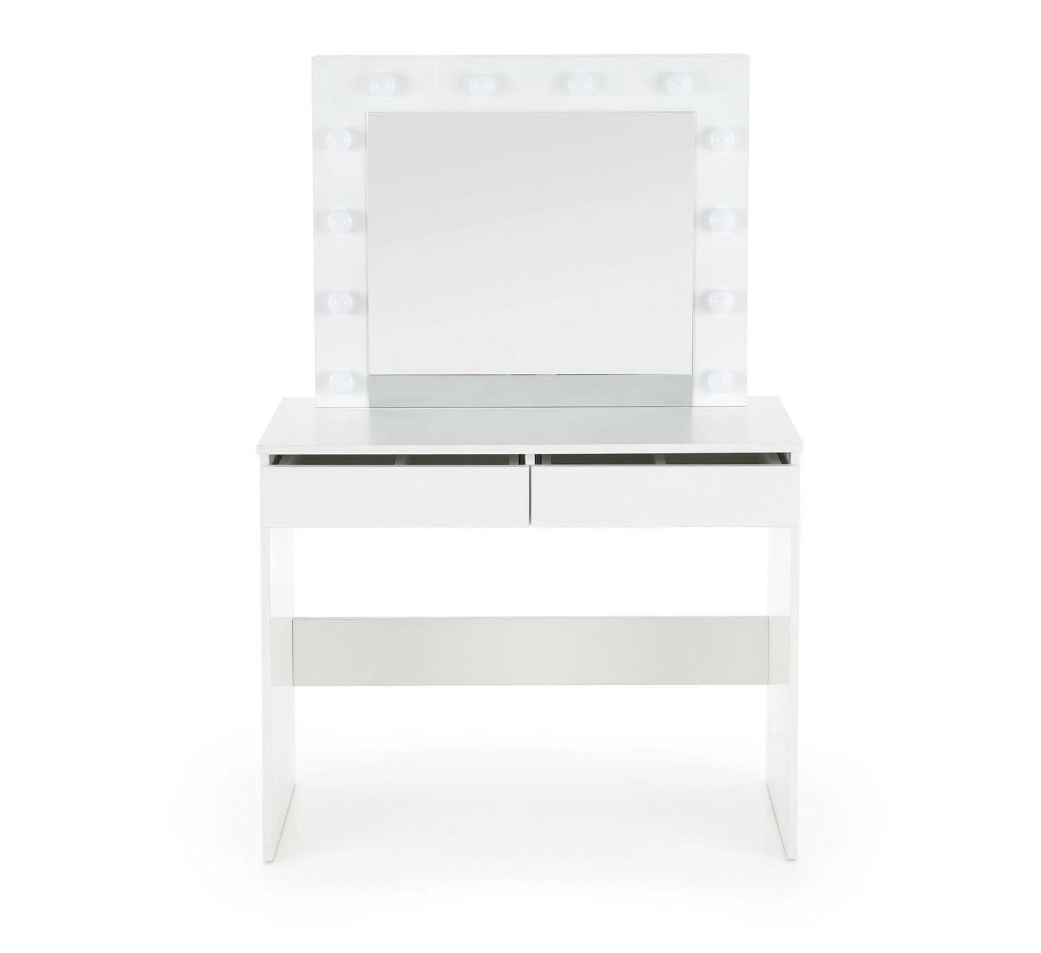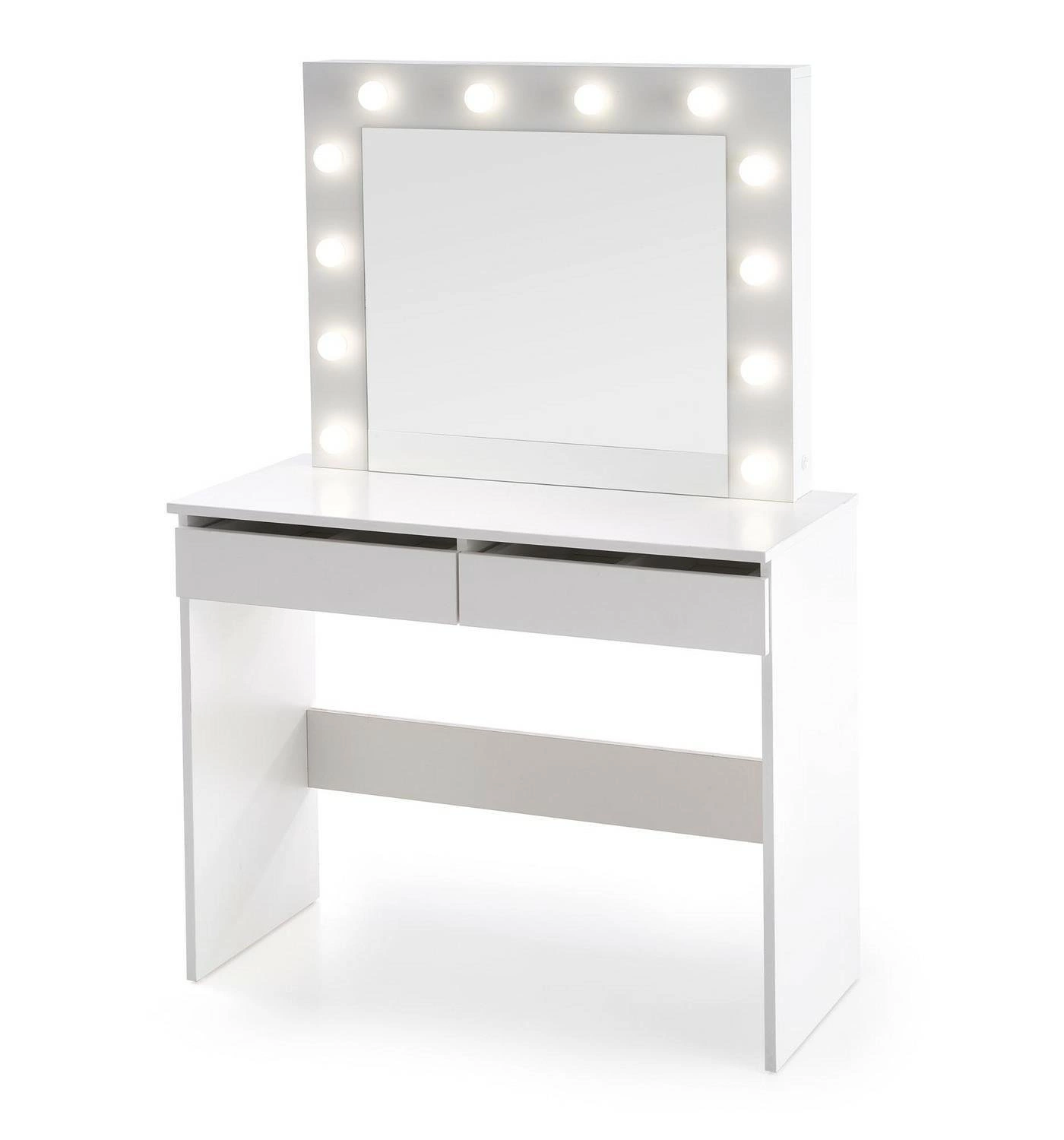 Najważniejszym elementem toaletki jest oczywiście duże lustro, które zostało zintegrowane z meblem. To nie tylko praktyczne rozwiązanie, ale również designerska ozdoba, która odbija światło i powiększa optycznie przestrzeń. Dodatkowo, na górnej krawędzi lustra znajduje się oświetlenie LED, które zapewnia doskonale rozproszone światło. Dzięki niemu, wykonywanie makijażu, golenie czy układanie fryzury staje się prostsze i bardziej precyzyjne.