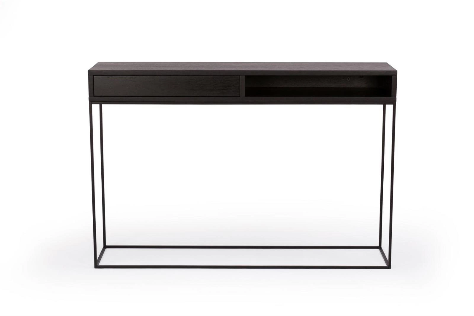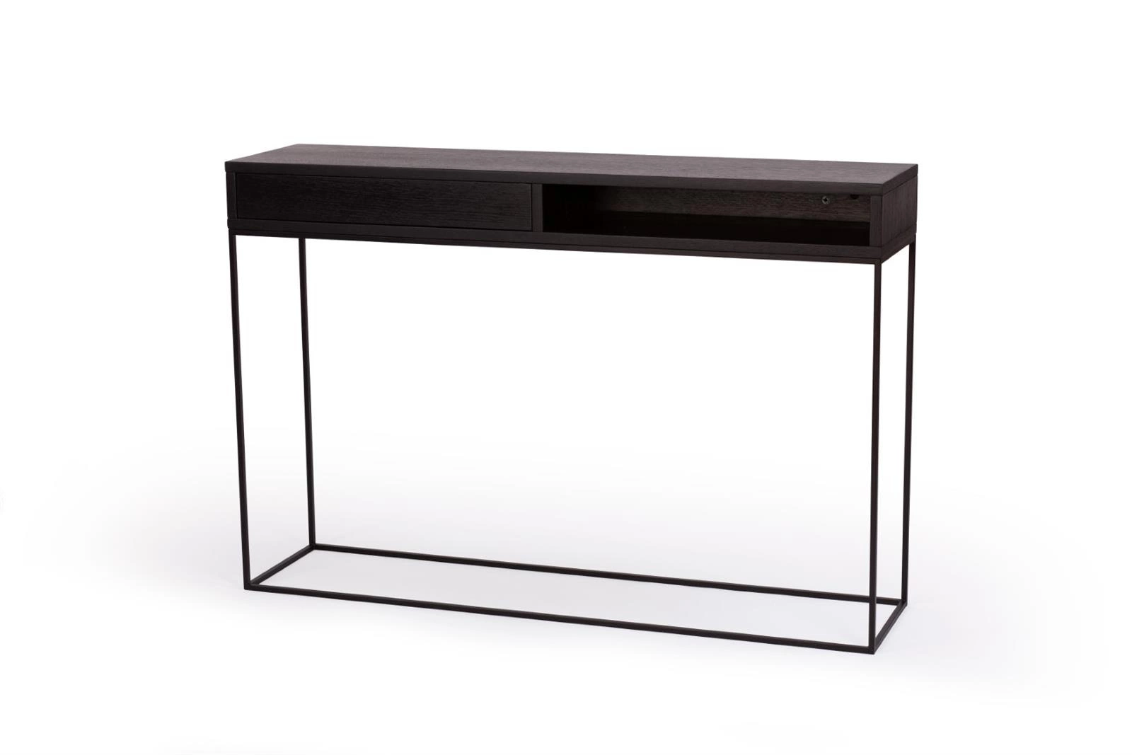 Konsola STAM to minimalistyczny mebel wykonany w stylu industrialnym. Ten styl lubi prostotę połączoną z funkcjonalnością. Znajdzie swoje zastosowanie w salonie czy przedpokoju jako mebel użytkowy i ozdoba. Wykonany w całości w ciemnej kolorystyce nada twojemu wnętrzu elegancji.