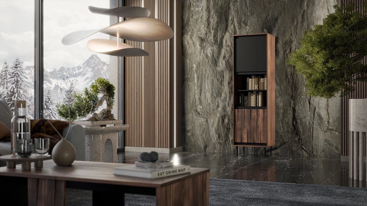 Witryna Miri w kolorze orzechowym i czarnym to elegancki mebel, który z powodzeniem stanie się centralnym punktem w Twoim wnętrzu. Wykonana z wysokiej jakości płyty meblowej laminowanej oraz MDF foliowanego, witryna łączy w sobie trwałość z estetyką, zapewniając długowieczność i niezmienny wygląd przez lata. Jej orzechowe fronty o strukturze 3D przyciągają wzrok, dodając pomieszczeniu ciepła i wyjątkowego charakteru.
