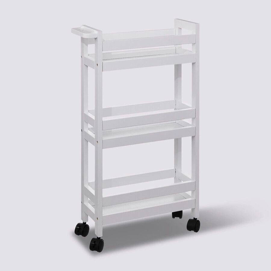 Wózek kuchenny na kółkach 5five simply smart to praktyczne i stylowe rozwiązanie do przechowywania w domu, biurze lub łazience. Trzy pojemne półki, solidna konstrukcja z wytrzymałych materiałów oraz uniwersalny biały kolor sprawiają, że z łatwością zorganizujesz przestrzeń, niezależnie od pomieszczenia. Dzięki wysokości 75 cm oraz mobilności, wózek świetnie sprawdzi się zarówno jako dodatkowy regał, jak i podręczny stolik na kółkach.