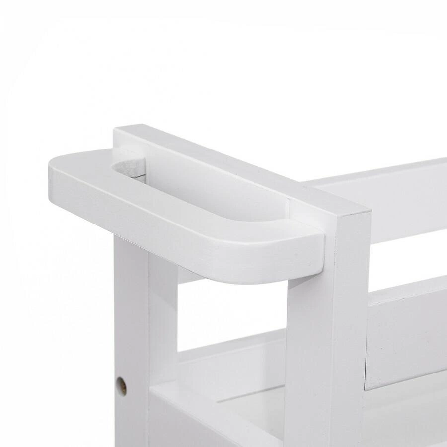 Biały kolor i półmatowe wykończenie wpisują się w nowoczesne, skandynawskie aranżacje. Prosta forma sprawia, że wózek na kółkach świetnie komponuje się zarówno z jasnymi, jak i kontrastowymi wnętrzami, dodając im lekkości i świeżości. Lekka konstrukcja o wysokości 75 cm umożliwia swobodny dostęp do każdej z trzech półek, a subtelne detale podkreślają estetykę całego mebla.