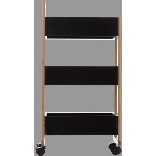 Wózek kuchenny Caddy wyróżnia się minimalistycznym, skandynawskim designem, łączącym czarne akcenty z naturalnym odcieniem drewna. Sprawdzi się zarówno w jasnych, jak i ciemniejszych aranżacjach wnętrz, wprowadzając do nich odrobinę natury i świeżości. Uniwersalna kolorystyka sprawia, że łatwo dopasujesz go do wystroju swojej kuchni, łazienki czy jadalni.