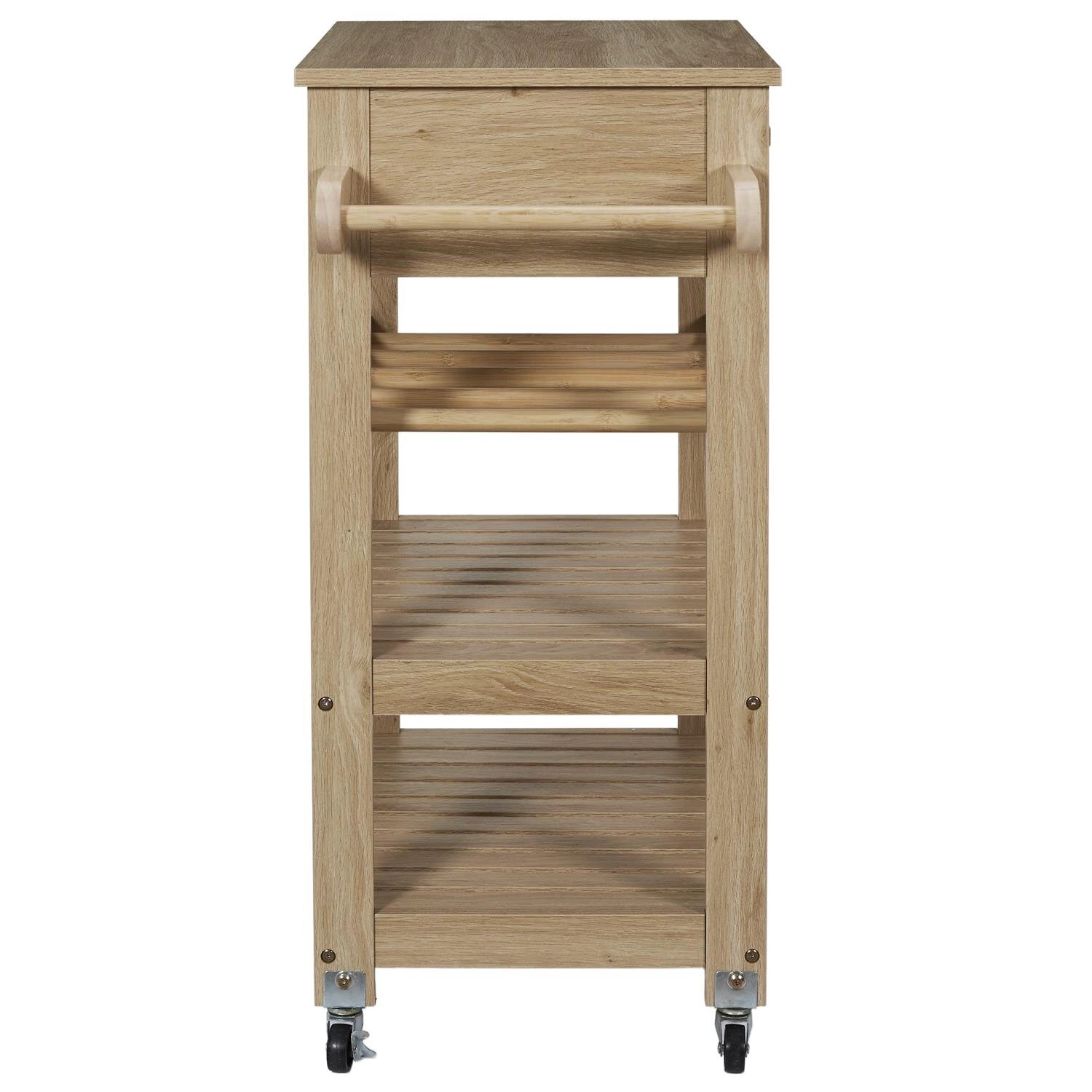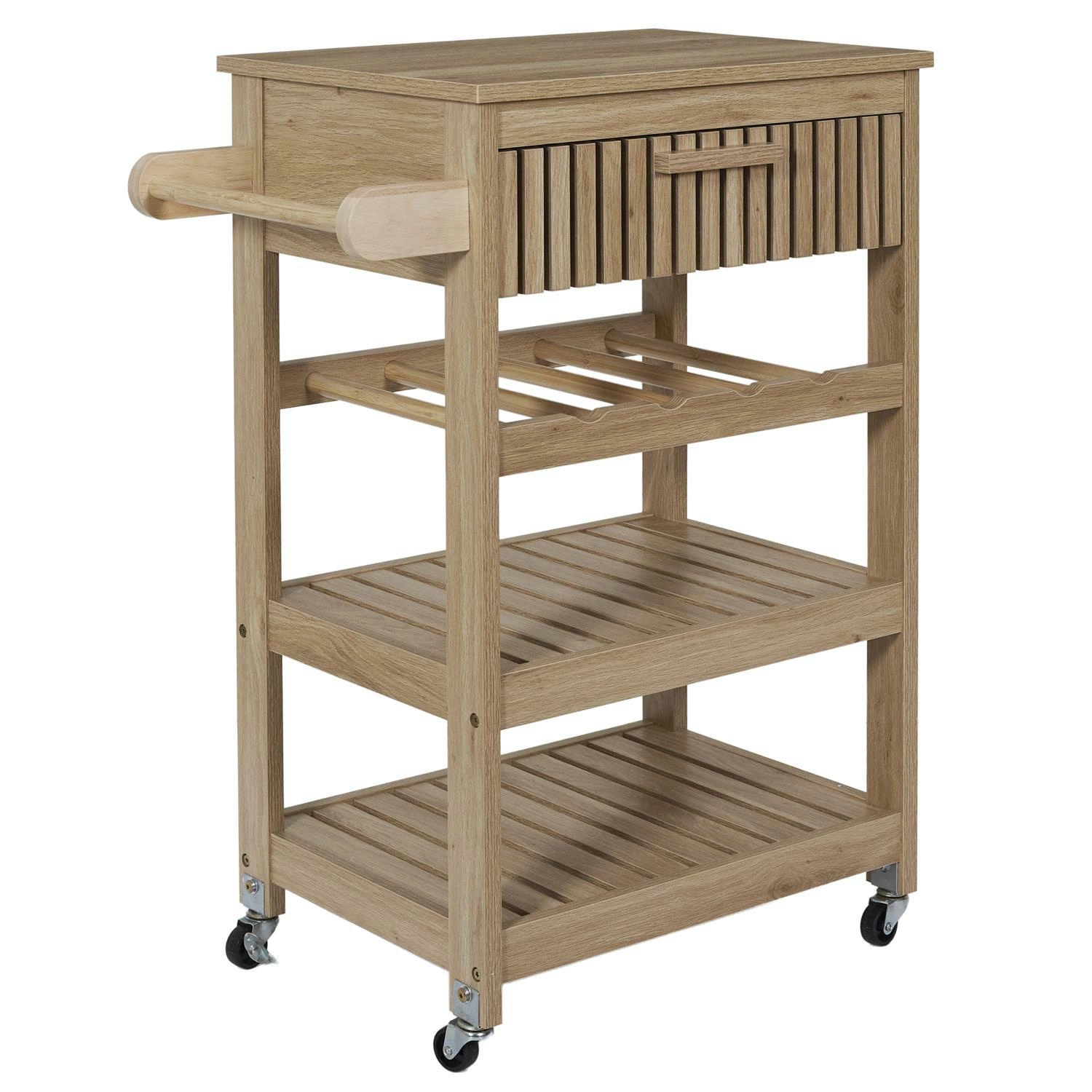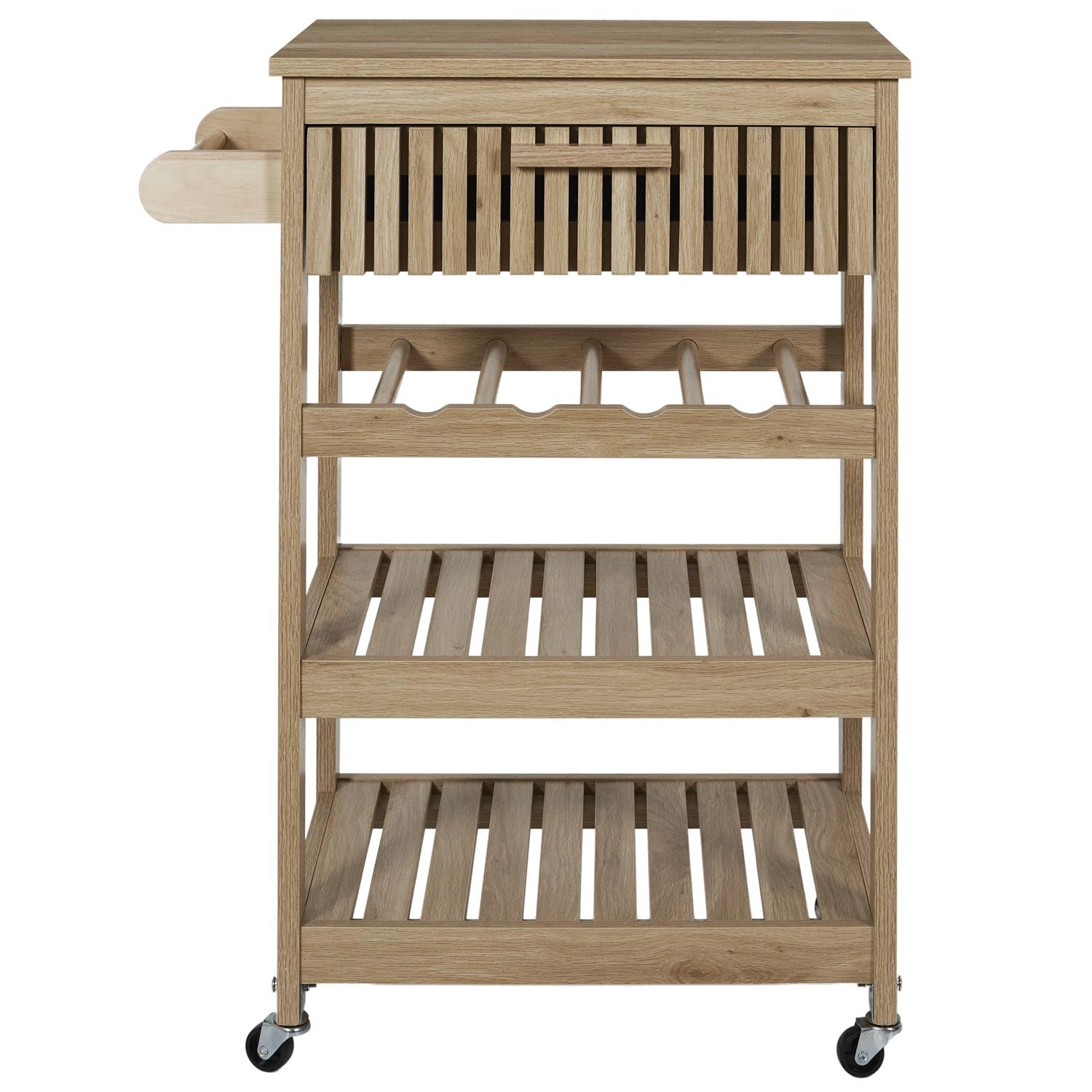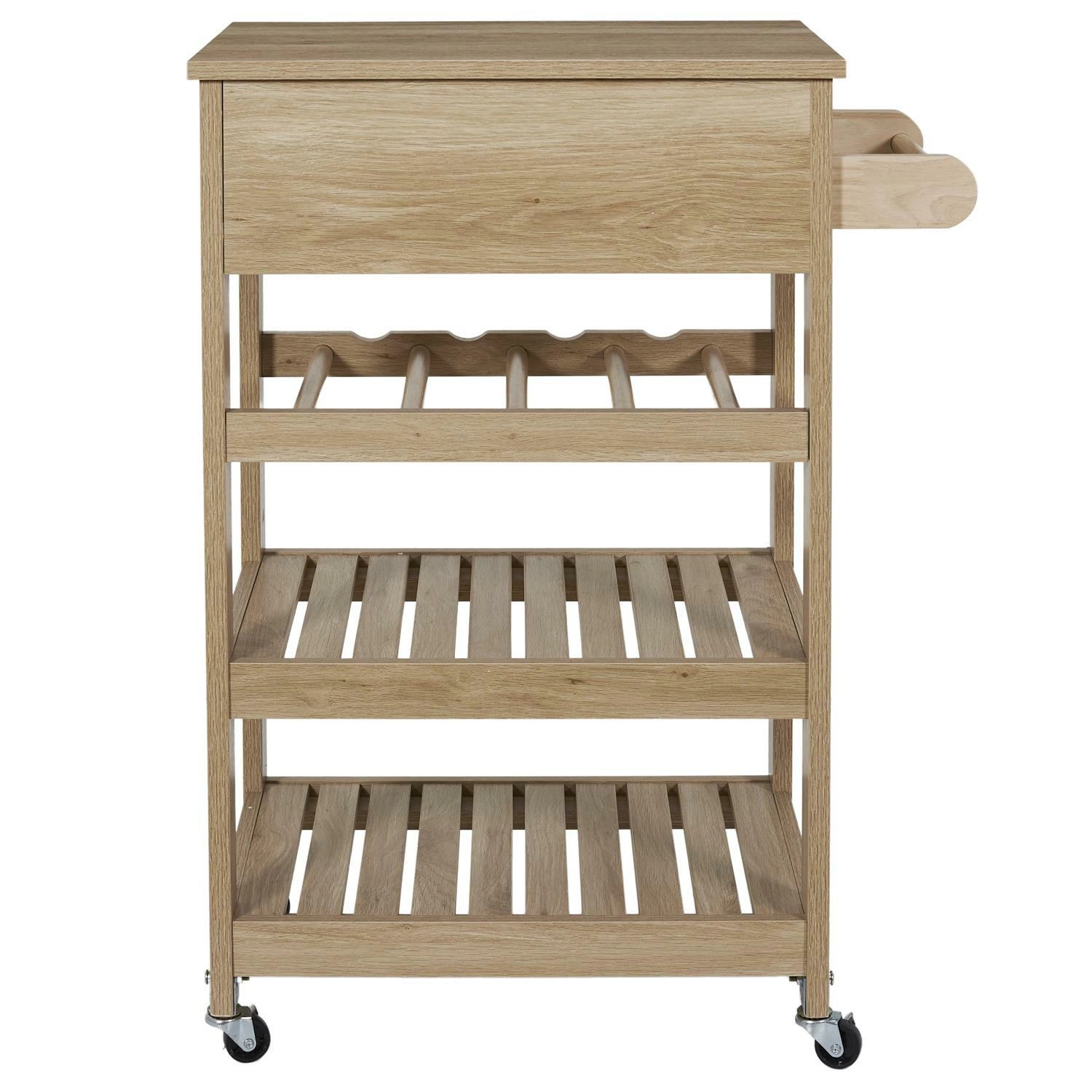 Intesi Klaus to pojemny, drewniany wózek kuchenny na kółkach, utrzymany w naturalnym, skandynawskim stylu. Wyposażony w trzy praktyczne półki oraz wygodne uchwyty, doskonale sprawdzi się w kuchni i jadalni jako mobilny pomocnik do serwowania potraw, przechowywania naczyń czy organizacji akcesoriów. Solidna konstrukcja o szerokości 65 cm oraz wysokości 84,5 cm zapewnia stabilność nawet przy pełnym obciążeniu, a łatwość przemieszczania gwarantują cztery zwrotne kółka.