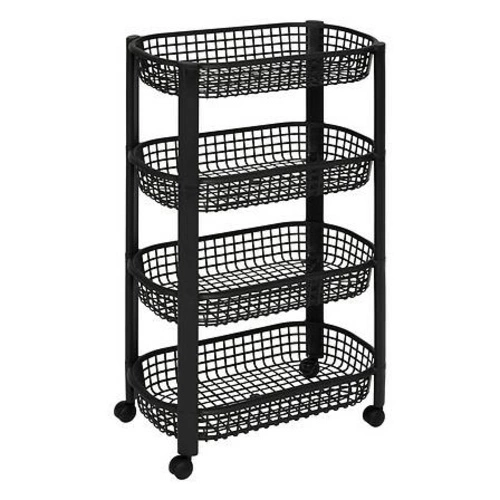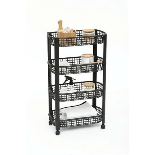 Wózek kuchenny na kółkach 4-poziomowy czarny marki 5five simply smart to wszechstronne i pojemne rozwiązanie do przechowywania, które łatwo dopasujesz do każdej kuchni. Cztery głębokie półki pozwalają uporządkować produkty spożywcze, akcesoria lub środki czystości, a kompaktowe wymiary (wysokość 79 cm, szerokość 46,5 cm, głębokość 25,5 cm) gwarantują maksymalne wykorzystanie nawet niewielkiej przestrzeni. Solidne wykonanie z wytrzymałego tworzywa sztucznego w eleganckim, czarnym kolorze podkreśla nowoczesny charakter mebla i zapewnia łatwość utrzymania w czystości.