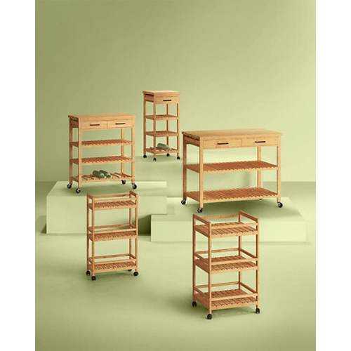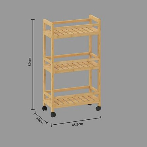 Przedstawiamy Wózek Linha 3-poziomowy w kolorze naturalnym, który dzięki swojej funkcjonalności i eleganckiemu wyglądowi stanie się niezastąpionym elementem Twojej kuchni czy łazienki. Wykonany z drewna bambusowego, zapewnia trwałość i wytrzymałość na długie lata. Jego kółka z hamulcem umożliwiają łatwe przemieszczanie, a jednocześnie stabilność, kiedy tego potrzebujesz.