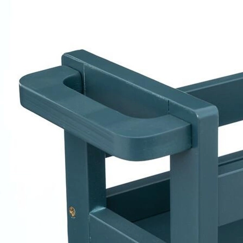 Kolor wózka to petrol, czyli głęboki odcień morski, który doda charakteru każdemu wnętrzu. Ten niebanalny kolor sprawia, że wózek nie tylko jest praktycznym meblem, ale także atrakcyjnym elementem dekoracyjnym. Może służyć jako oryginalna półka na książki w salonie, praktyczny stojak na kosmetyki w łazience, czy pomocnik w kuchni do przechowywania przypraw i akcesoriów kuchennych.
