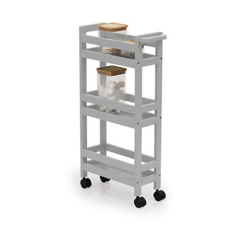 4 kółka i 3 półki - mobilność i pojemność szarego wózka