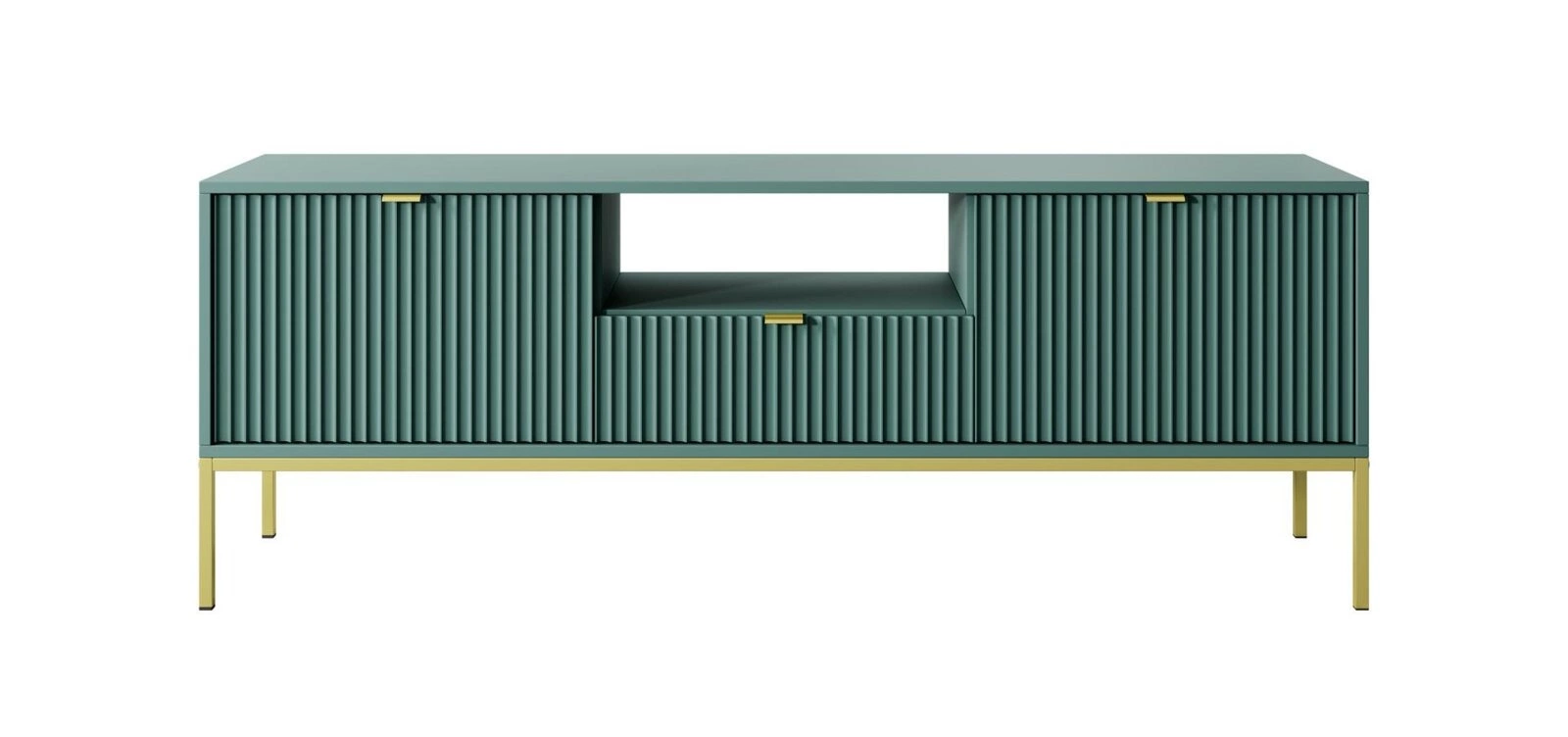 - Szafka RTV Delicious ryflowana zielona złote nogi
