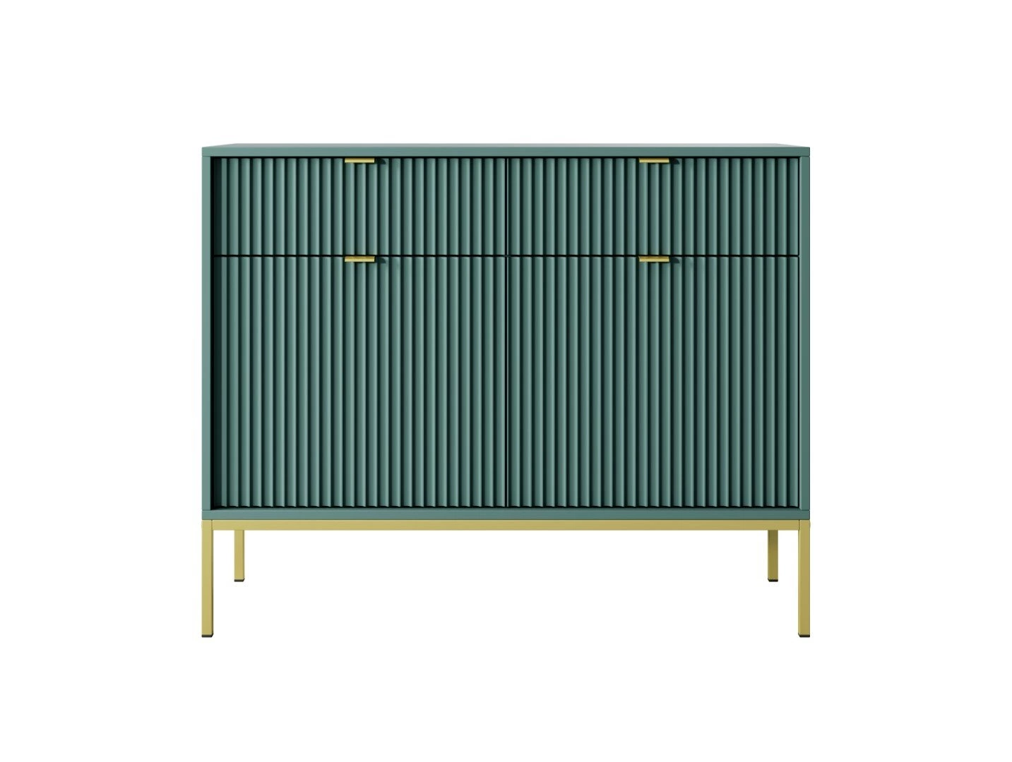 - Komoda Delicious wysoka ryflowana zielona złote nogi