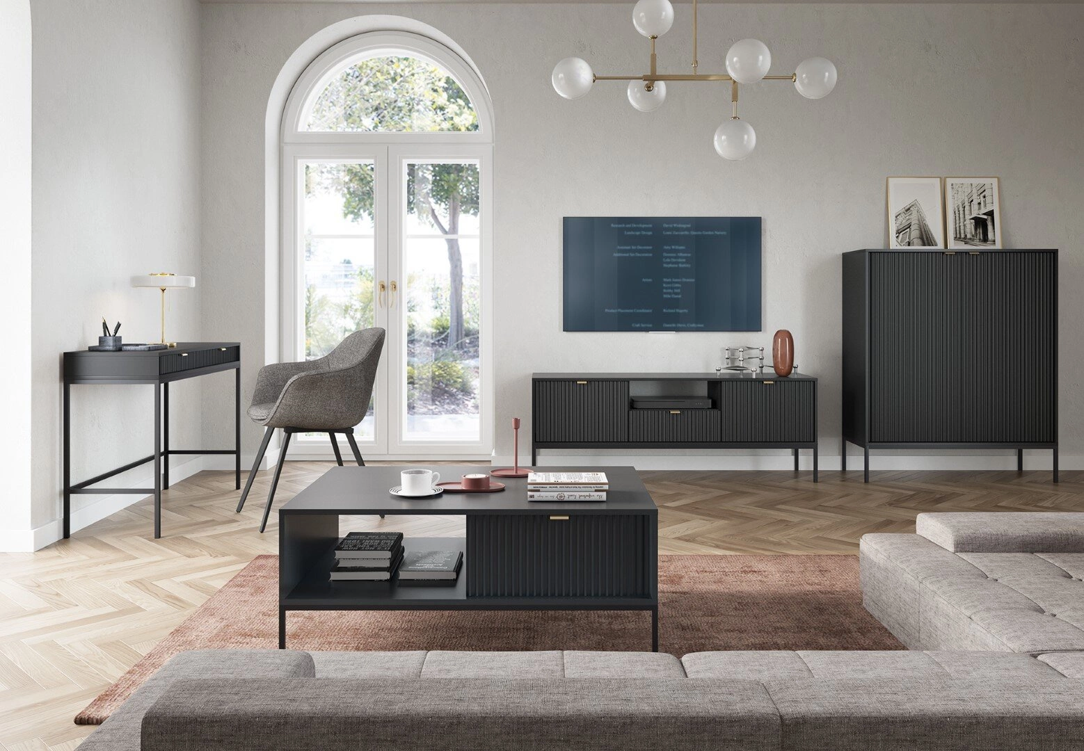 Zestaw mebli do salonu Delicious łączy nowoczesność i elegancję, oferując meble o ryflowanych frontach, które są charakterystyczne i rozpoznawalne w świecie designu. Ta kolekcja spełnia potrzeby osób ceniących funkcjonalność, estetykę i wysoką jakość. Meble Delicious wykonane z płyty drewnopodobnej z okleiną odporną na uszkodzenia, dodadzą niepowtarzalnego uroku każdemu wnętrzu. Kolekcja oferuje szeroki wybór modeli, idealnych do różnych pomieszczeń — od salonu, przez sypialnię, aż po pokój młodzieżowy czy przedpokój.