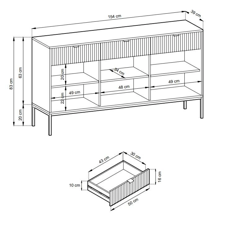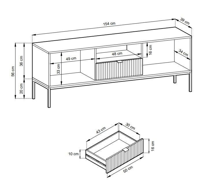 - Szafka RTV ryflowana (Wysokość: 56, Szerokość: 154, Głębokość: 39)