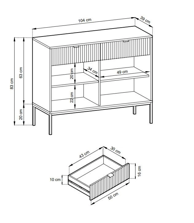 - Komoda ryflowana (Wysokość: 83 Szerokość: 104 Głębokość: 39)