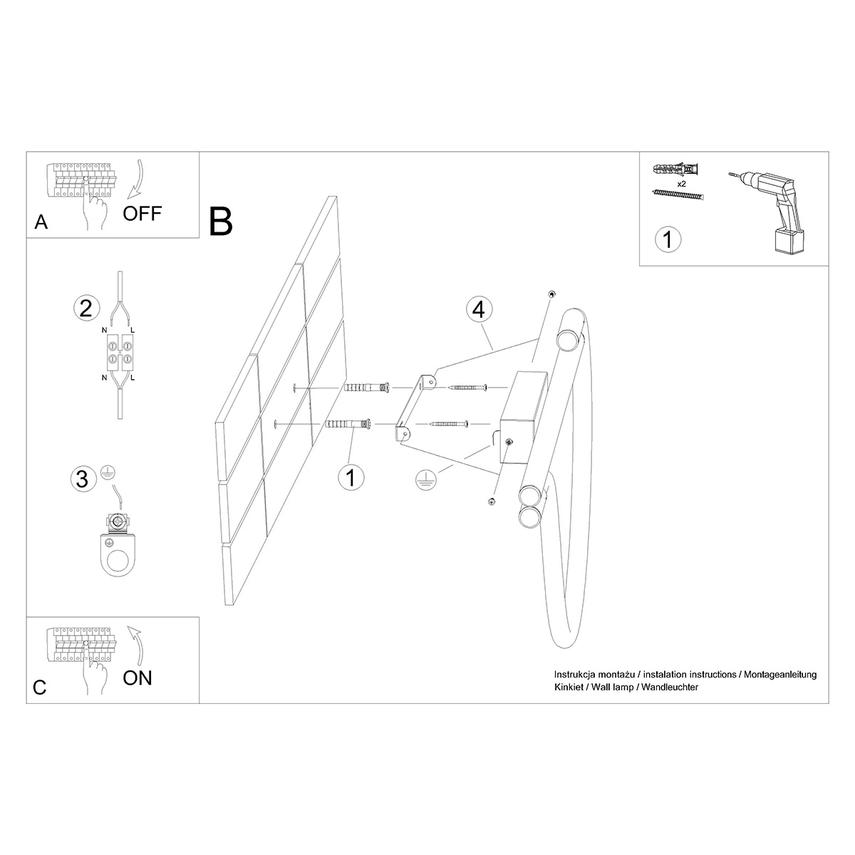 - Czarna stal podkreśla elegancję i styl kinkietu.