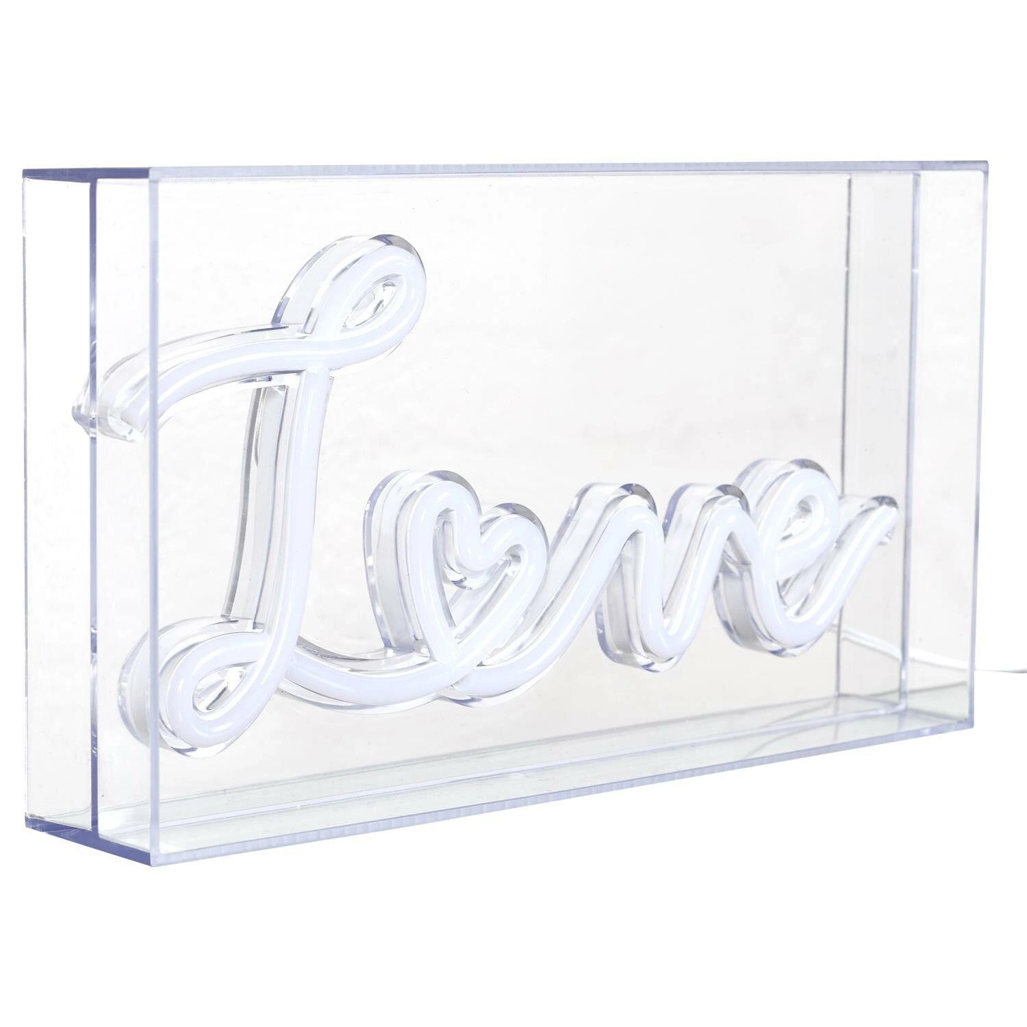 Dodaj odrobinę romantyzmu i nowoczesności do swojego wnętrza dzięki akrylowej lampie LED w kształcie napisu "Love". Jej eleganckie, przezroczyste akrylowe wykonanie oraz subtelne podświetlenie LED tworzą ciepłą atmosferę i pięknie rozświetlają przestrzeń. Idealna jako dekoracja do sypialni, salonu lub na prezent dla bliskiej osoby. Długość: 23 cm Wysokość: 13 cm Głębokość: 4 cm Waga: 260 g Materiał: AS, PS, PVC