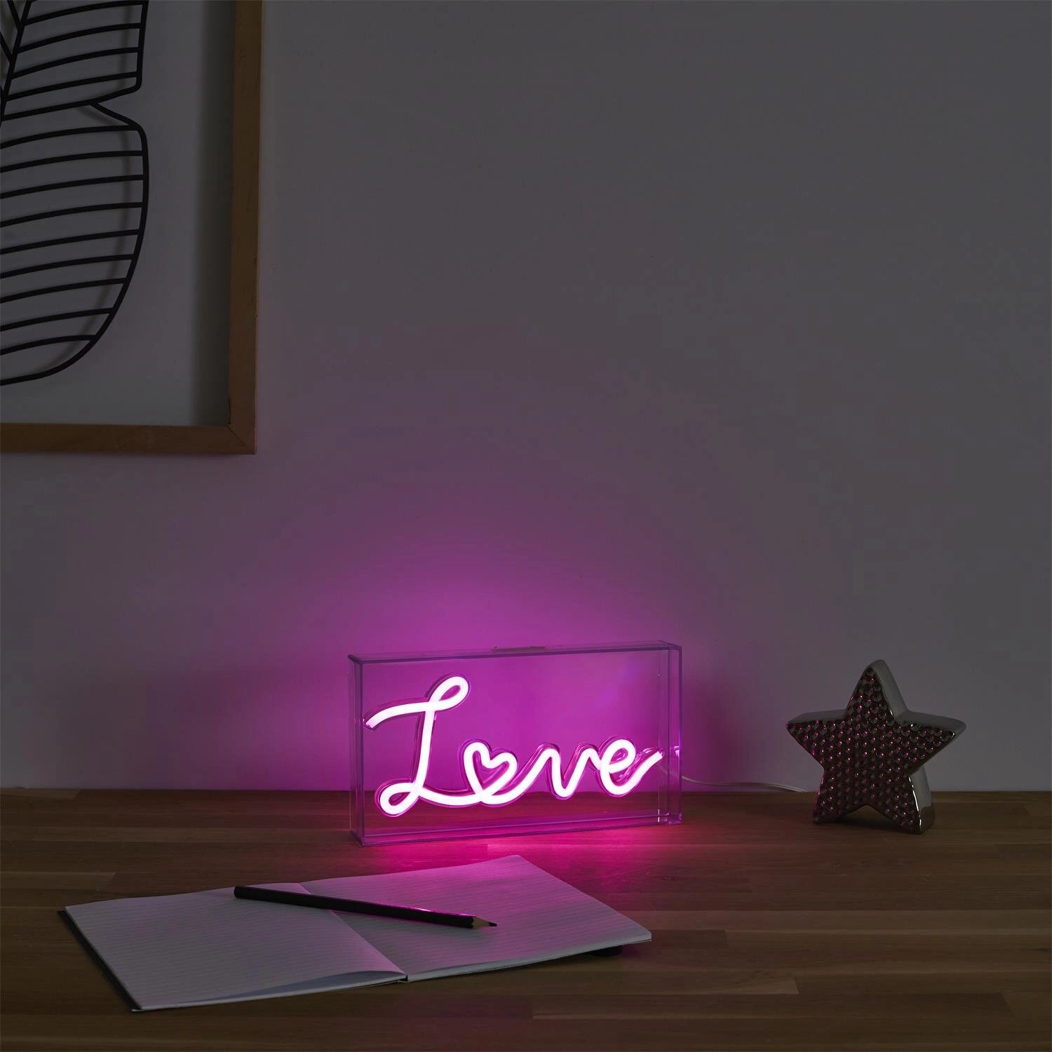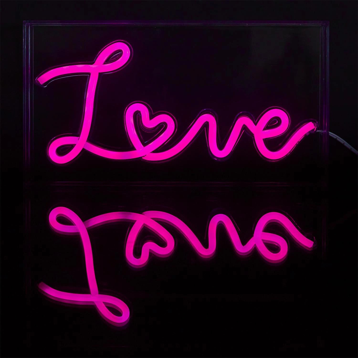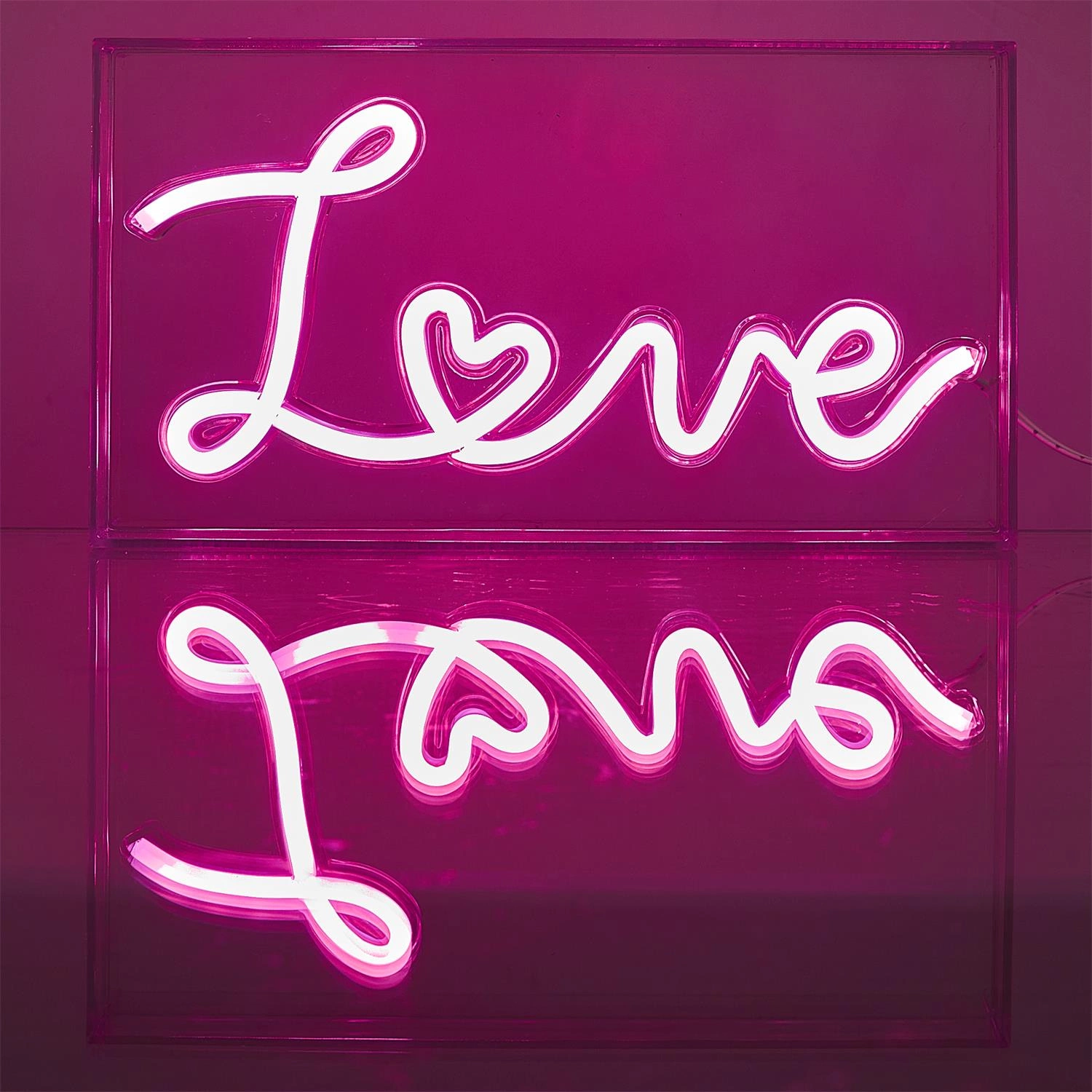 Dodaj wyjątkowy akcent do swojego wnętrza dzięki lampie LED z efektem neonu "Love". Ta stylowa lampa emituje subtelne, ciepłe światło, które wprowadza przytulną atmosferę w każdym pomieszczeniu. Efekt świetlny inspirowany neonami nadaje jej nowoczesny, artystyczny wygląd, idealnie komponujący się zarówno w sypialni, salonie, jak i w pokoju dziecięcym. Lampa "Love" to doskonałe rozwiązanie dla osób szukających wyjątkowych elementów dekoracyjnych.