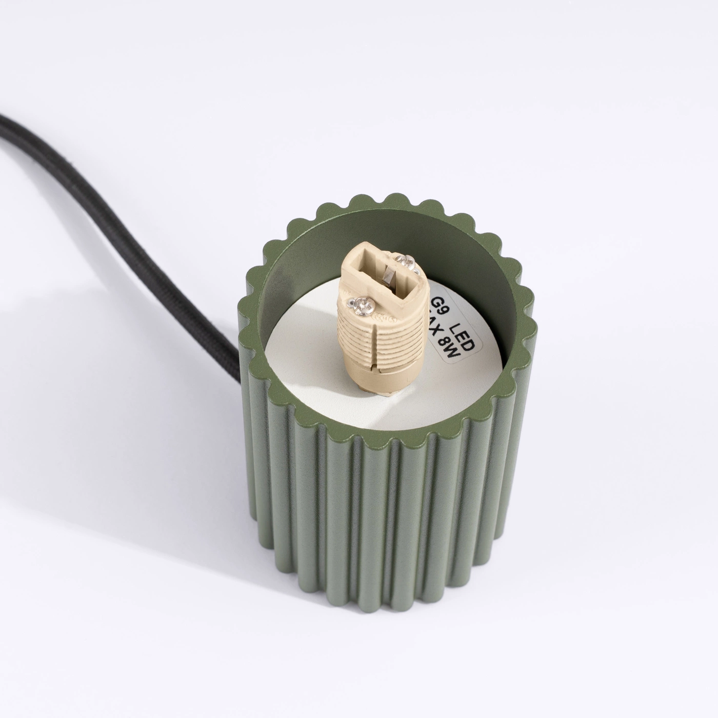 Przedstawiamy lampę biurkową HALO w odcieniu zielonej oliwki - element oświetlenia, który wprowadzi do Twojego wnętrza nie tylko światło, ale również niepowtarzalny styl. Jej unikalna forma i ryflowane detale przyciągają uwagę, a matowa, mleczna kula dopełnia estetyczny obraz lampy. Wybierając HALO, zyskujesz nie tylko praktyczne oświetlenie, ale i wyjątkowy dodatek do aranżacji wnętrza.