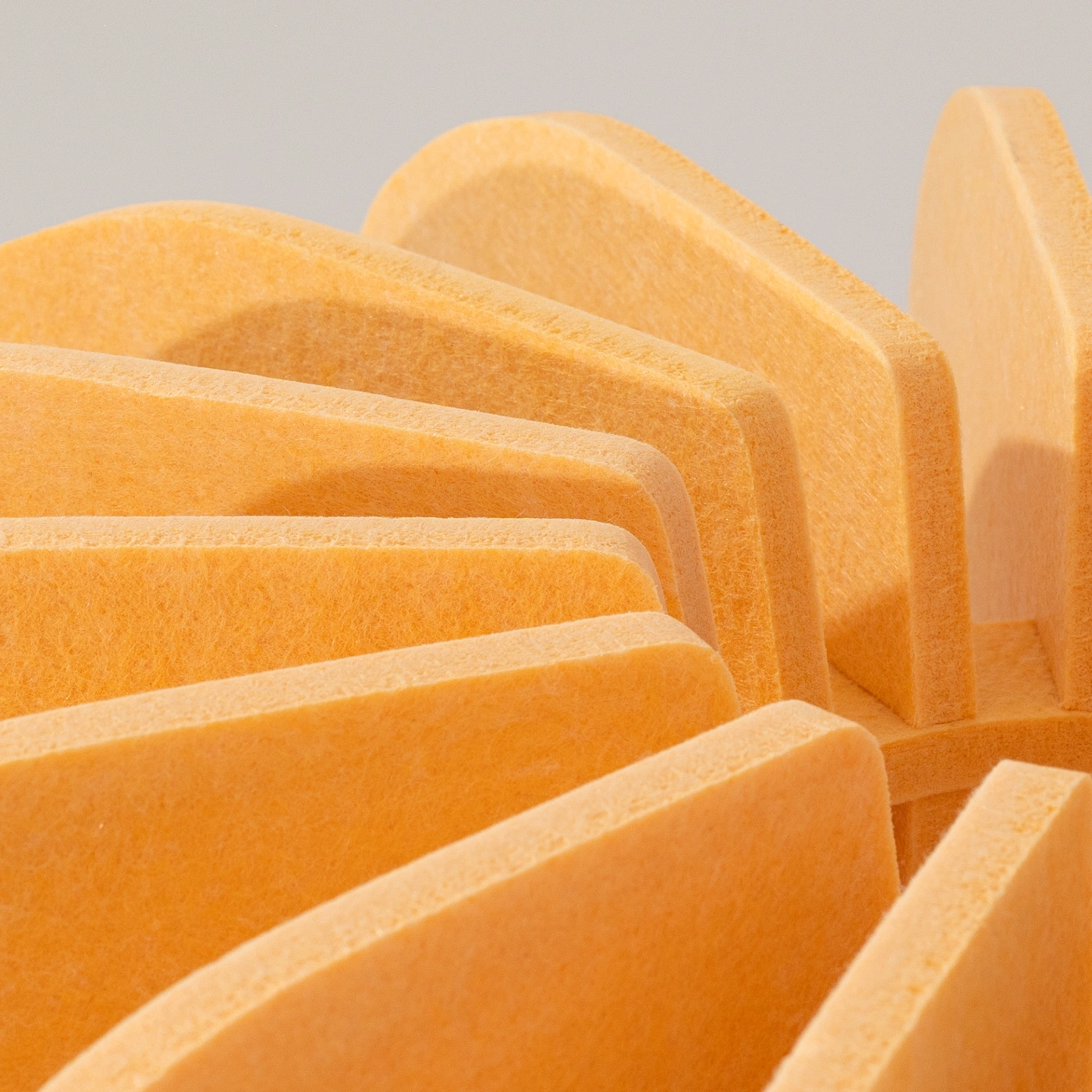 - Żółty filcowy abażur – nadaje wnętrzu energii i nowoczesnego charakteru