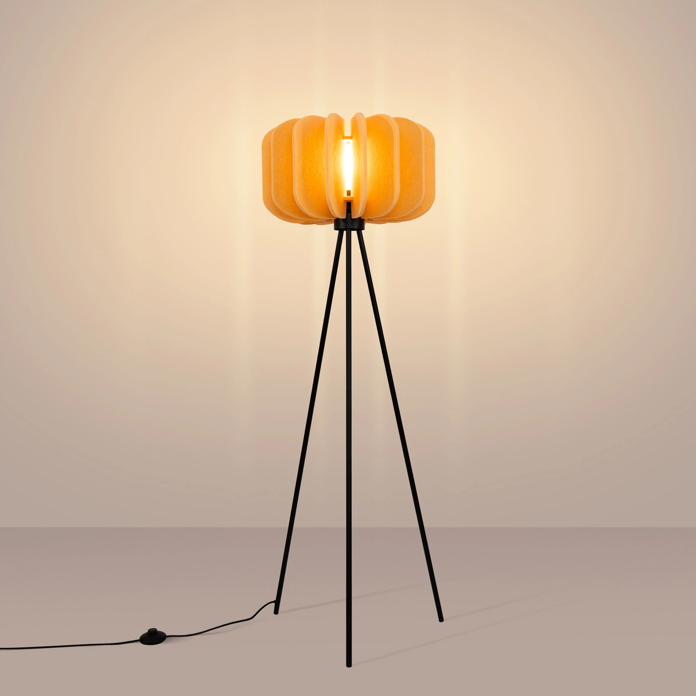 Lampa podłogowa MULA 45 marki SOLLUX LIGHTING to nowoczesna propozycja oświetlenia, która łączy wyrazisty design z funkcjonalnością. Charakterystyczny żółty abażur z filcu osadzony na stabilnej, czarnej, stalowej podstawie sprawia, że lampa świetnie dopełni aranżację salonu, jadalni lub pokoju młodzieżowego. Wysokość 134 cm oraz szerokość 45 cm zapewniają optymalne rozproszenie światła, tworząc przytulną atmosferę w każdym wnętrzu.