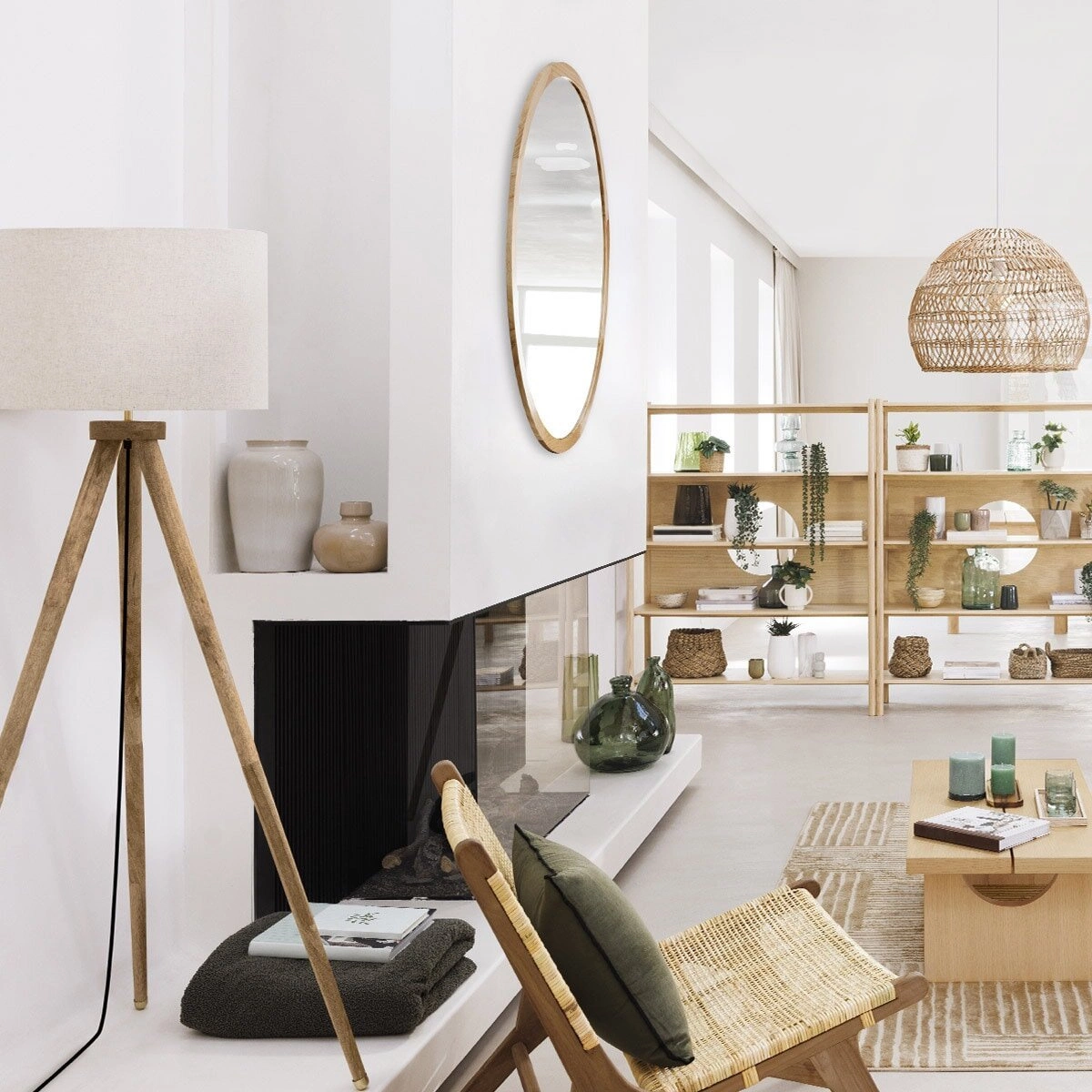Styl skandynawski, do którego nawiązuje lampa podłogowa Olga, to połączenie prostoty, funkcjonalności oraz naturalnych materiałów. Idealnie wpisuje się w różne wnętrza - od salonu, przez sypialnię, aż po biuro czy kawiarnię. Beżowy kolor klosza oraz naturalne drewno mango stanowią doskonałe tło dla różnorodnych dodatków, takich jak dywan z juty czy bawełniana krata.
