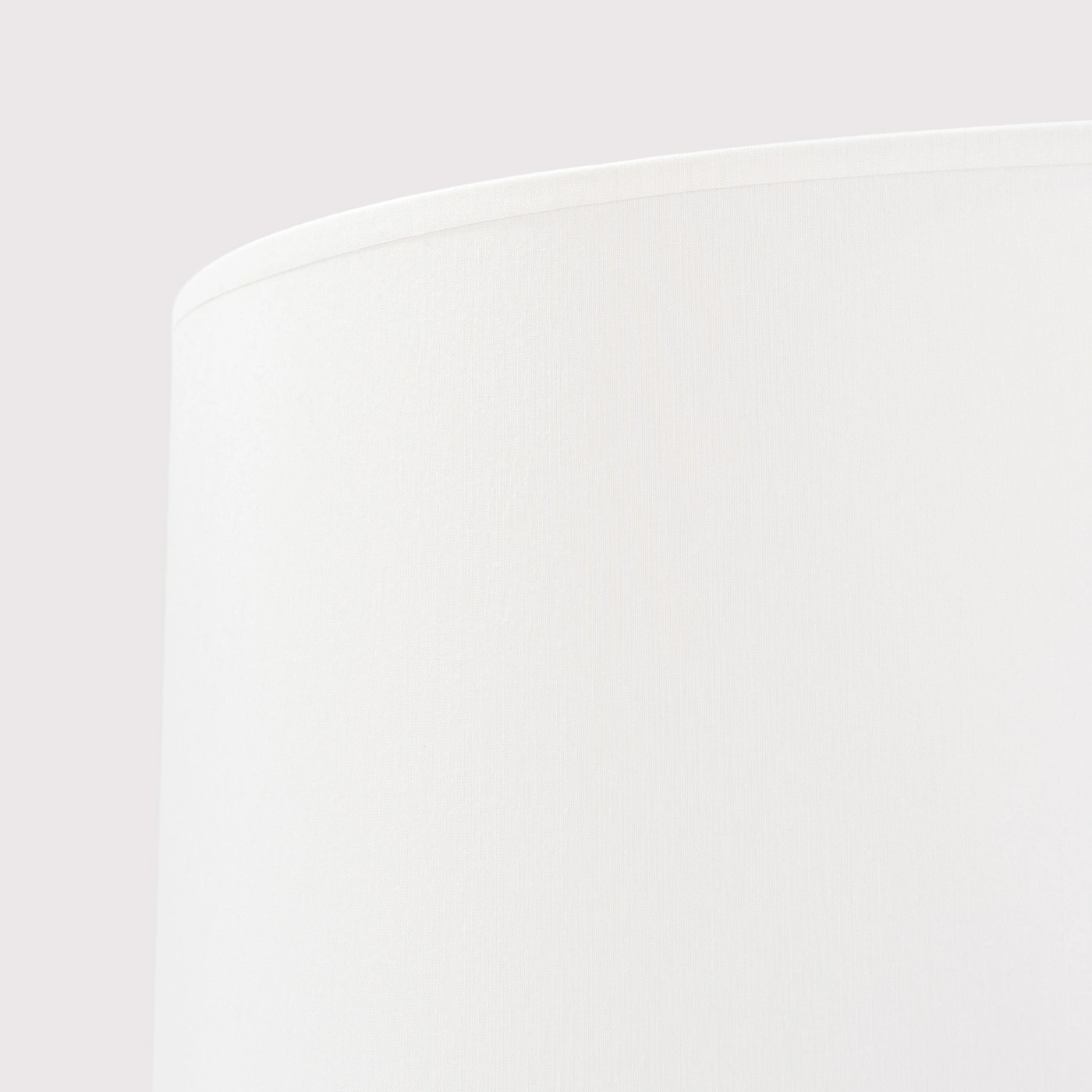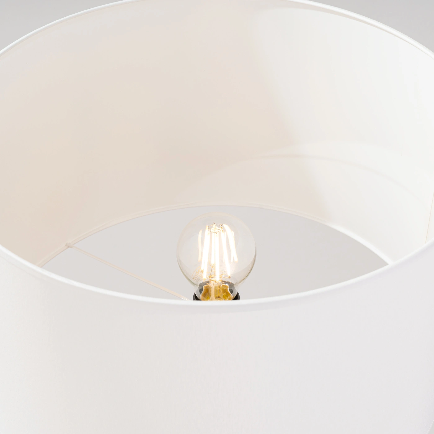 - Biały abażur z tkaniny – przyjemne, rozproszone światło dla relaksu i odpoczynku
