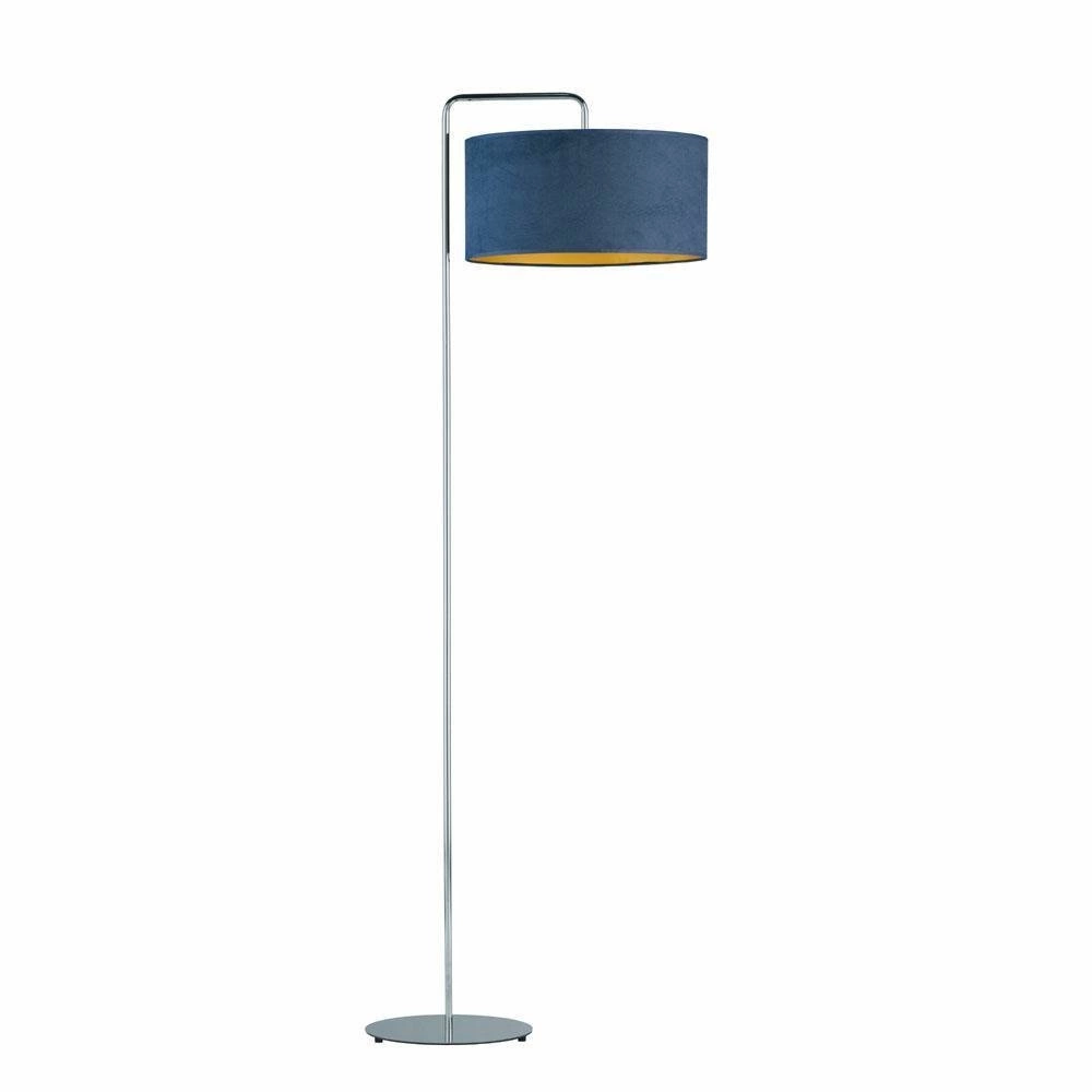 Lampa stojąca do salonu BOLIVIA GOLD niebieska glamour z welurowym abażurem Lysne 156 cm
