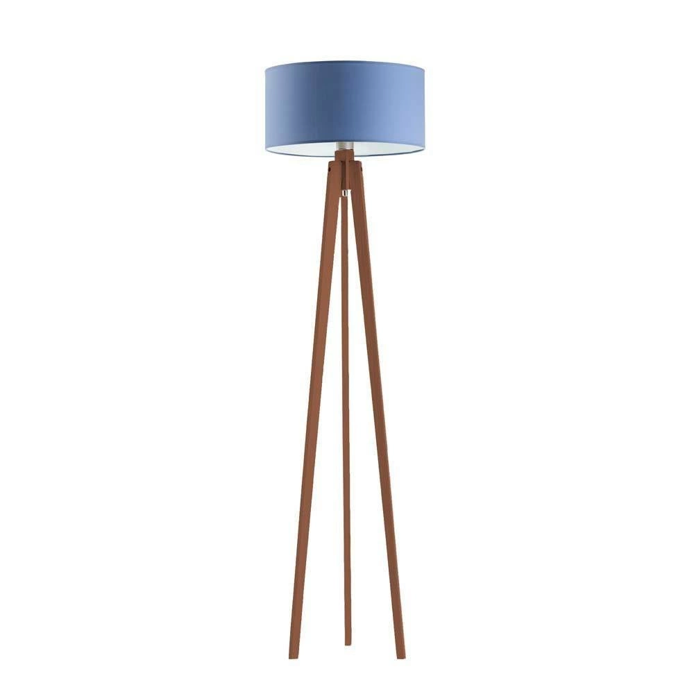Lampa stojąca do salonu MIAMI trójnóg glamour niebieska z mahoniowym drewnem personalizowana
