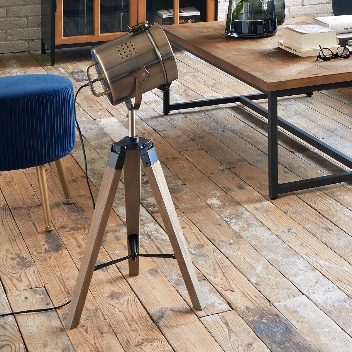 - Lampa stołowa "Ebor" o wysokości 68 cm, efektowny design w kolorze miedzi.