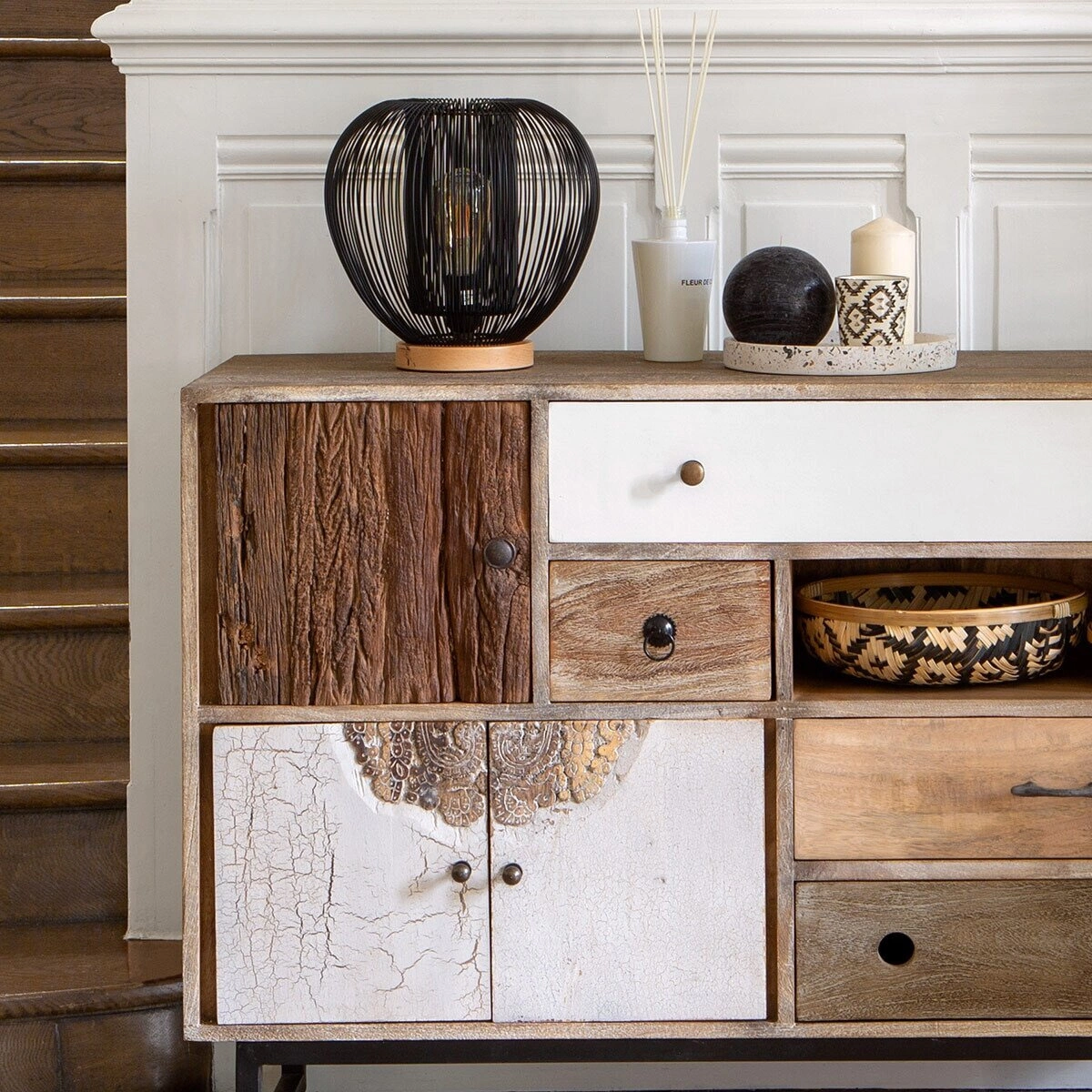 Żelazna lampa z drewnianą podstawą - niezwykłe połączenie materiałów