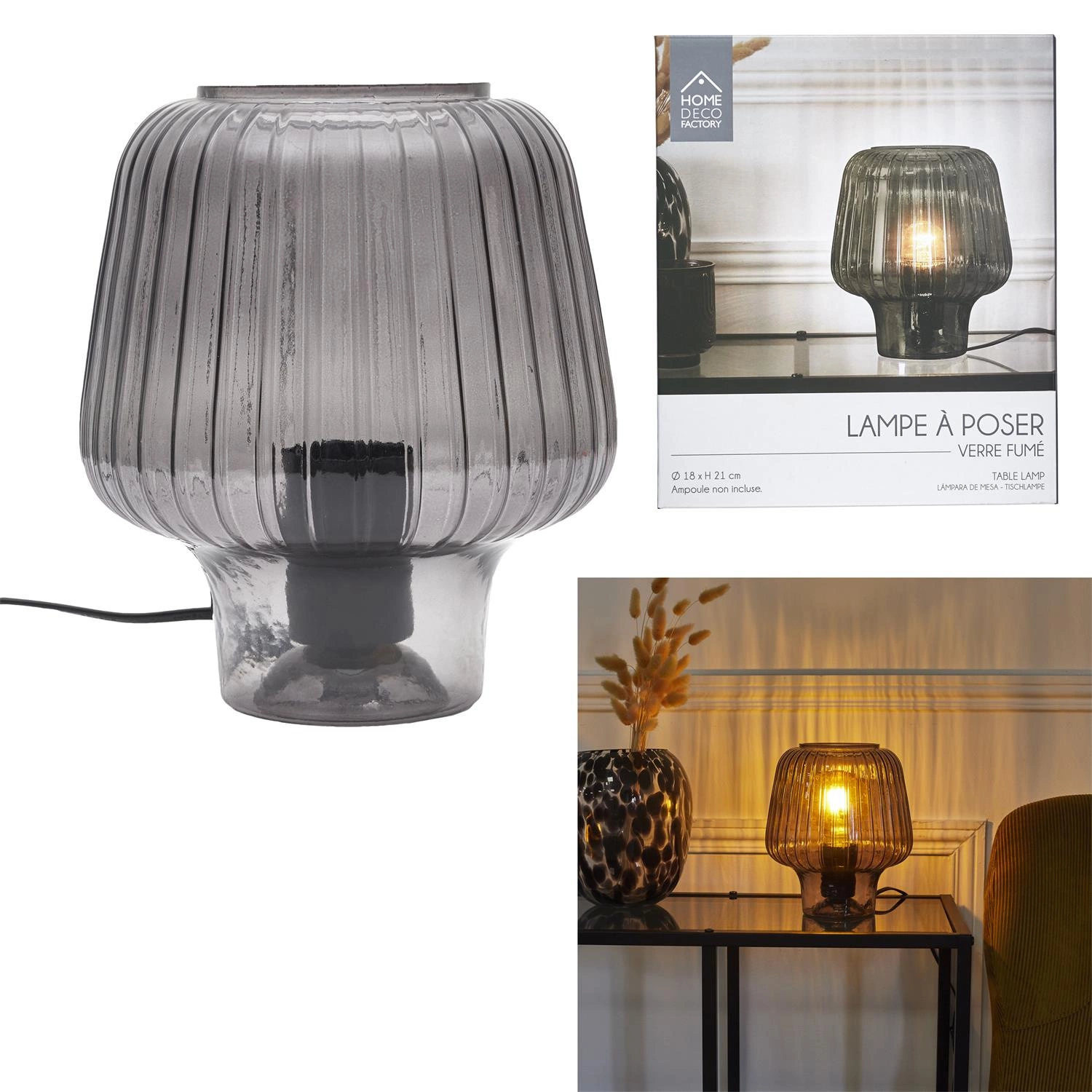 Lampa stołowa Lasima dymiona to niezwykłe połączenie stylu, elegancji i funkcjonalności, które sprawi, że wieczorne chwile odpoczynku nabiorą zupełnie nowego wymiaru. Wykonana w całości ze szkła lampa stołowa zachwyca nietypowym kształtem, który przyciąga uwagę i dodaje wyjątkowego charakteru każdemu wnętrzu.