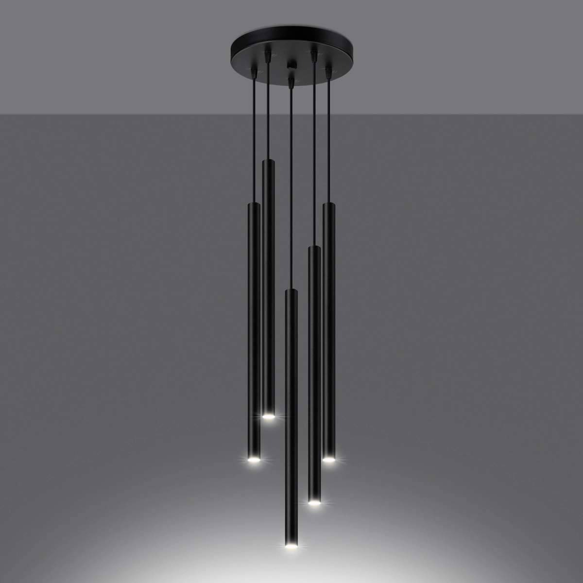 Prosta forma i neutralny czarny kolor sprawiają, że lampa wisząca Pastelo 5P łatwo wpisuje się w różne przestrzenie – zarówno domowe, jak i biurowe. Świetnie sprawdzi się jako lampa nad stół w jadalni, żyrandol do salonu czy funkcjonalne oświetlenie do kuchni. Wysokość 110 cm umożliwia zawieszenie na odpowiednim poziomie, dostosowanym do wysokości pomieszczenia i potrzeb domowników.
