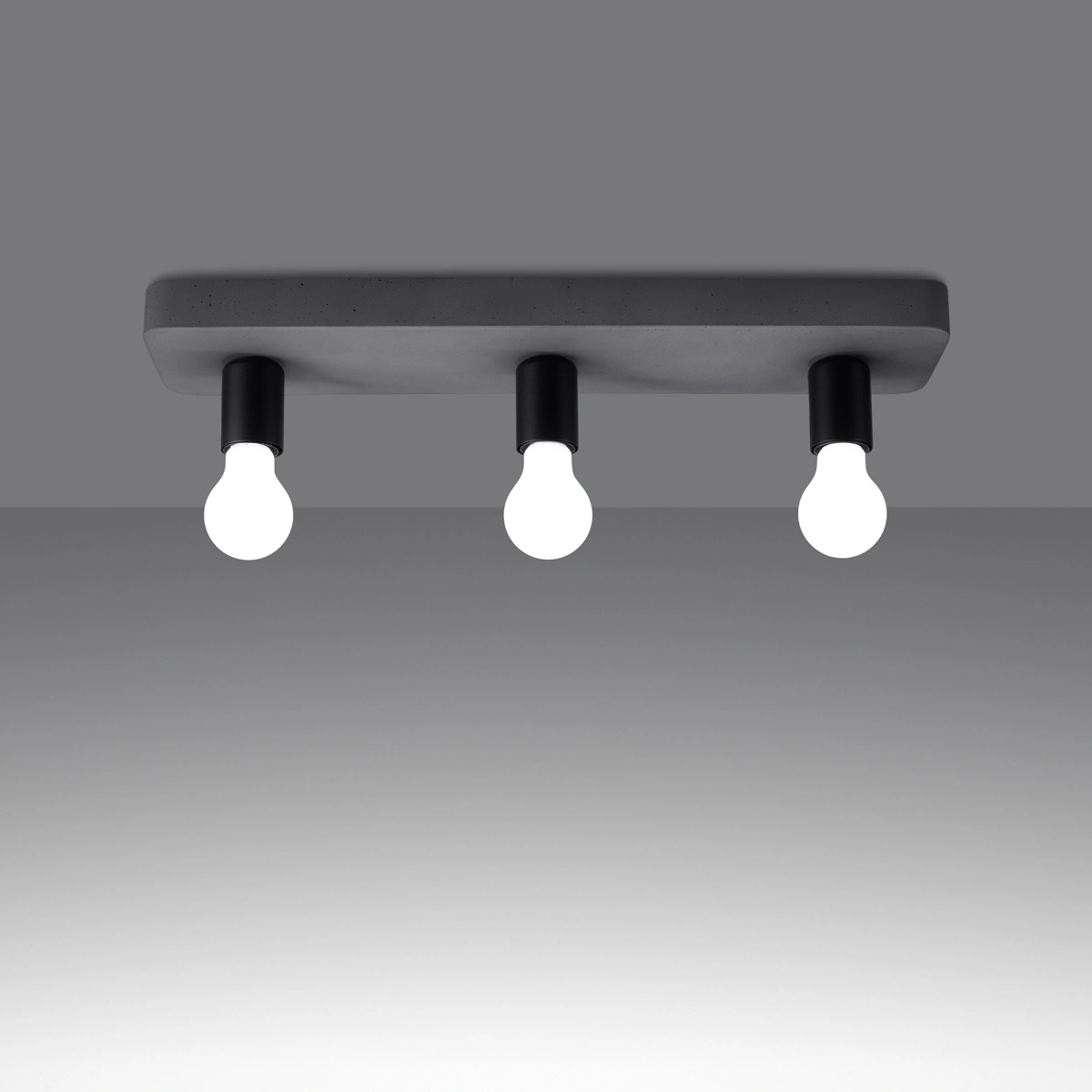 Plafon sufitowy betonowy TAVO 3 marki Sollux to połączenie minimalistycznego designu, wytrzymałego betonu i funkcjonalności, której oczekujesz od nowoczesnego oświetlenia. Model o długości 55 cm i trzech punktach świetlnych z oprawą E27 doskonale sprawdzi się w salonie, kuchni lub jadalni. Surowa, szara powierzchnia nadaje plafonowi wyrazisty, industrialny charakter, wprowadzając do wnętrza unikalny klimat loftu.