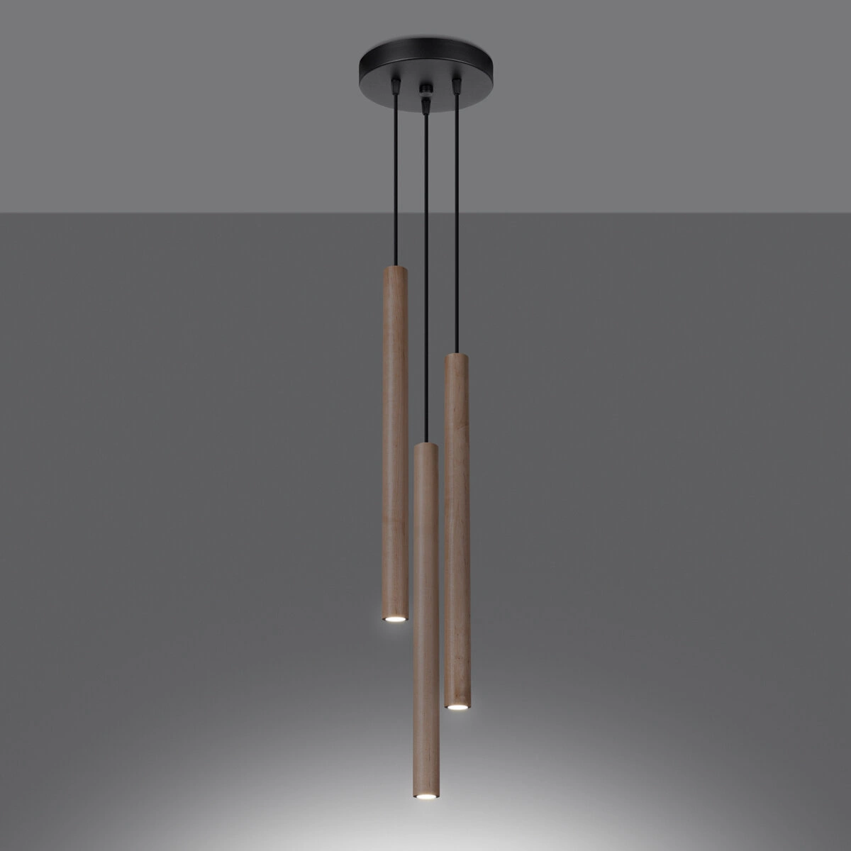 Pastelo 3-punktowa to lampa wisząca stworzona z myślą o miłośnikach minimalistycznych, a zarazem ciepłych aranżacji. Naturalny kolor drewna w połączeniu z czarnymi detalami przewodu i podsufitki wprowadza do wnętrza harmonię i subtelną elegancję. Lampa doskonale sprawdza się jako żyrandol nad stół w jadalni lub główne oświetlenie w salonie, tworząc przyjazną atmosferę podczas codziennych spotkań czy wieczornego relaksu.