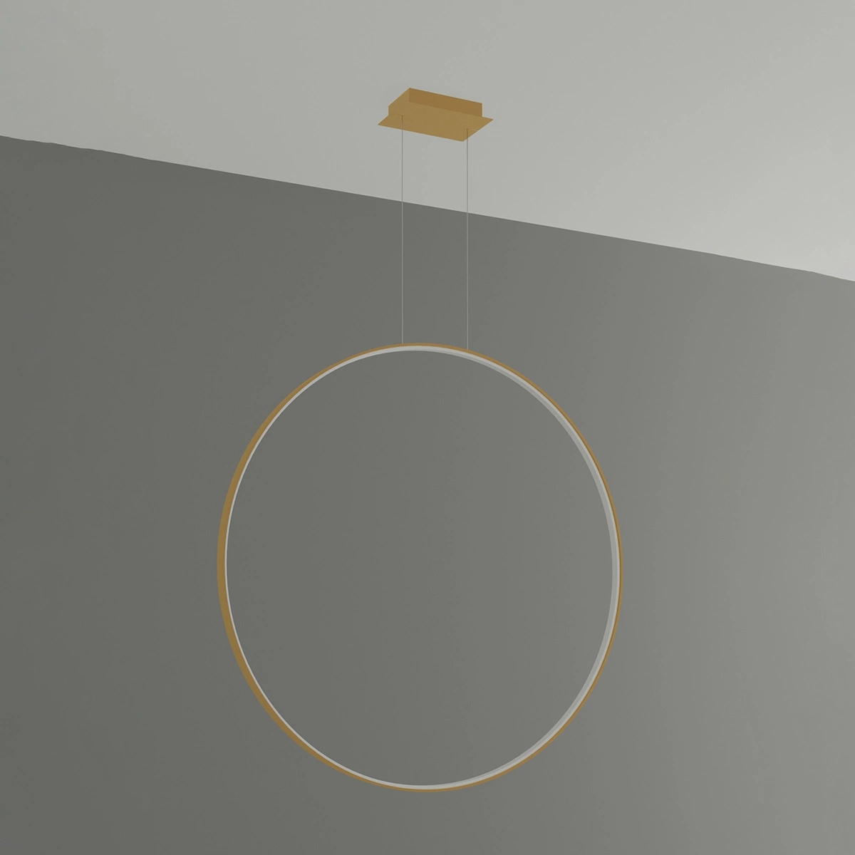 Prezentowana lampa wisząca RIO 110 złota LED 3000K to połączenie funkcjonalności i stylowego designu. Dzięki nowoczesnym okręgom ledowym nie tylko zapewnia doskonałe oświetlenie, ale również stanowi wyjątkowy element dekoracyjny. Idealnie sprawdzi się zarówno w pomieszczeniach prywatnych, jak salonie czy sypialni, jak i w eleganckich przestrzeniach publicznych, takich jak biura czy restauracje.
