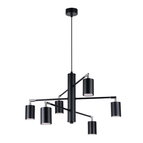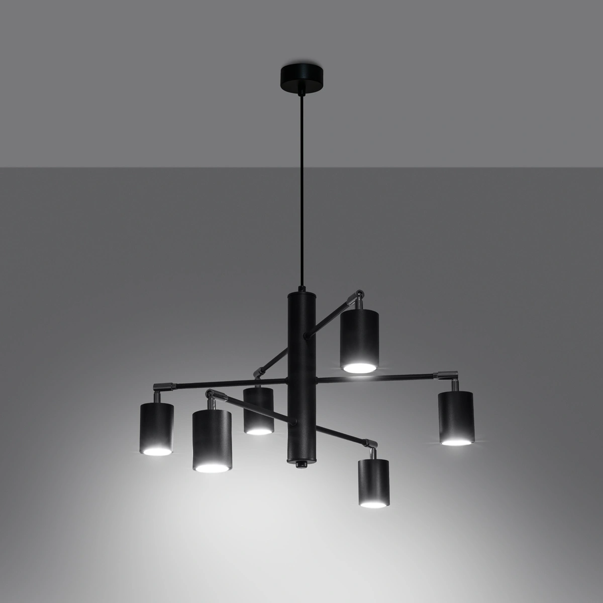 Żyrandol LEMMI 6 czarny marki SOLLUX LIGHTING to nowoczesna lampa sufitowa wykonana z trwałego metalu, wyposażona w sześć źródeł światła skierowanych w dół. Model ten o szerokości 77 cm i wysokości 125 cm doskonale sprawdzi się jako główne oświetlenie w salonie lub jadalni, zapewniając równomierne rozproszenie światła nad stołem czy w centralnej części pomieszczenia. Minimalistyczna, geometryczna forma w głębokiej czerni podkreśli nowoczesny charakter wnętrza, a funkcjonalność lampy pozwoli stworzyć komfortową atmosferę na co dzień i od święta.