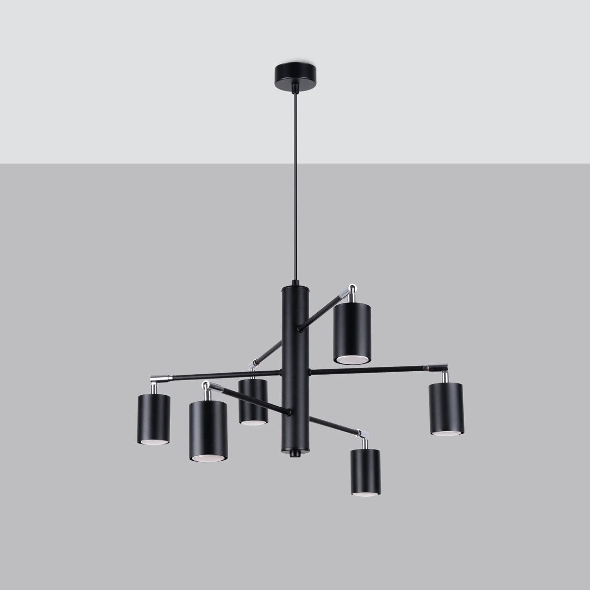 - Żyrandol LEMMI 6 czarny to nowoczesny i minimalistyczny design, który nie przeciąża wnętrza.
