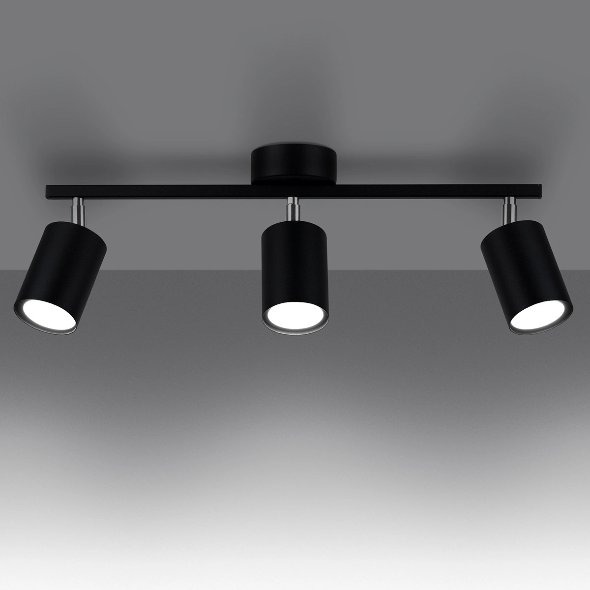 Plafon sufitowy LEMMI 3 marki SOLLUX LIGHTING to minimalistyczna propozycja dla miłośników nowoczesnych wnętrz. Wykonany z trwałego metalu w eleganckim, czarnym kolorze, wyposażony w trzy ruchome klosze i oprawy na żarówki GU10, doskonale sprawdzi się w salonie, kuchni, sypialni, jadalni czy biurze. Kompaktowa szerokość 46 cm i smukła konstrukcja czynią go praktycznym wyborem nawet do mniejszych pomieszczeń.
