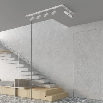- Montaż na szynie oświetleniowej eliminuje konieczność wielokrotnego przewiercania sufitu, co skraca czas instalacji i ułatwia wymianę lamp