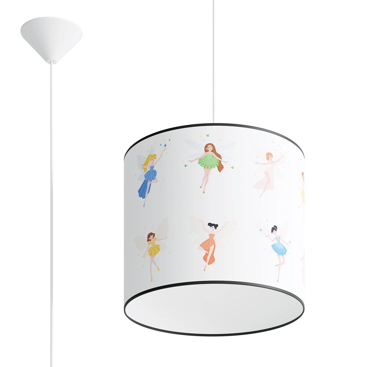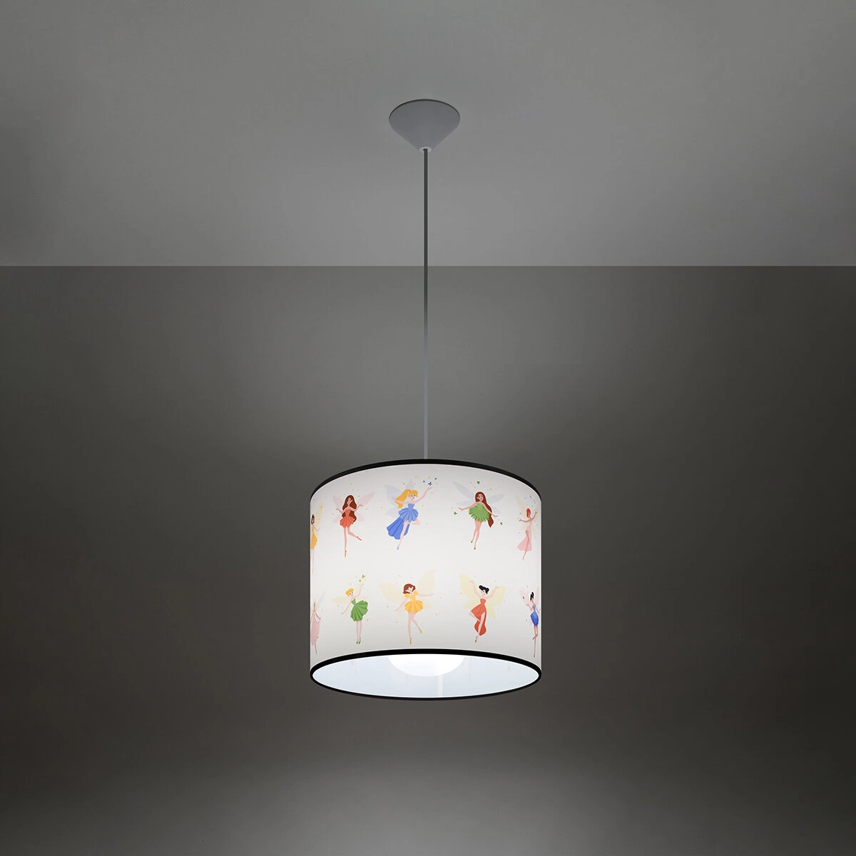 Lampa wisząca FAIRY 30 marki SOLLUX LIGHTING to nowoczesne, kolorowe oświetlenie z abażurem o średnicy 30 cm, które doskonale rozświetli i udekoruje pokój dziecka. Wykonana z trwałego PVC, lampa gwarantuje bezpieczne i rozproszone światło, tworząc przyjazną atmosferę zarówno do nauki, jak i zabawy. Jej unikalny, bajkowy design z motywem wróżek stanie się efektownym akcentem w każdym dziecięcym wnętrzu.