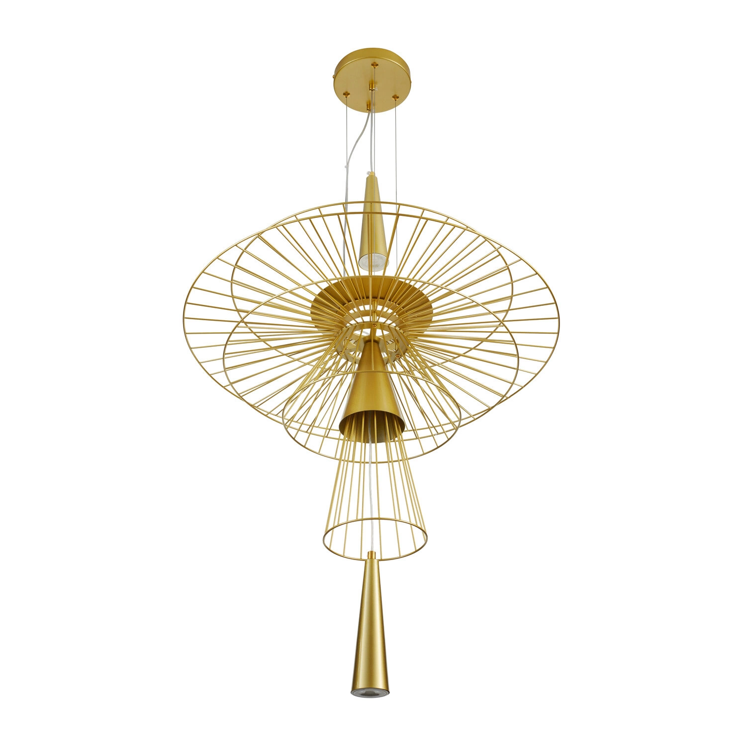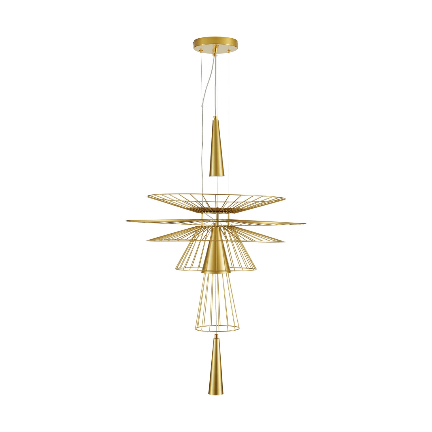 Lampa wisząca SUSSO L marki Step into Design to złoty, metalowy żyrandol o szerokości 60 cm, który doskonale łączy nowoczesny styl z elegancją. Wykonana w całości z metalu w szlachetnym, złotym wykończeniu, przyciąga wzrok minimalistyczną formą i wyrazistym charakterem. To idealny wybór do salonu, jadalni lub nad stół, gdzie efektownie podkreśli wystrój wnętrza, zapewniając jednocześnie nastrojowe oświetlenie.