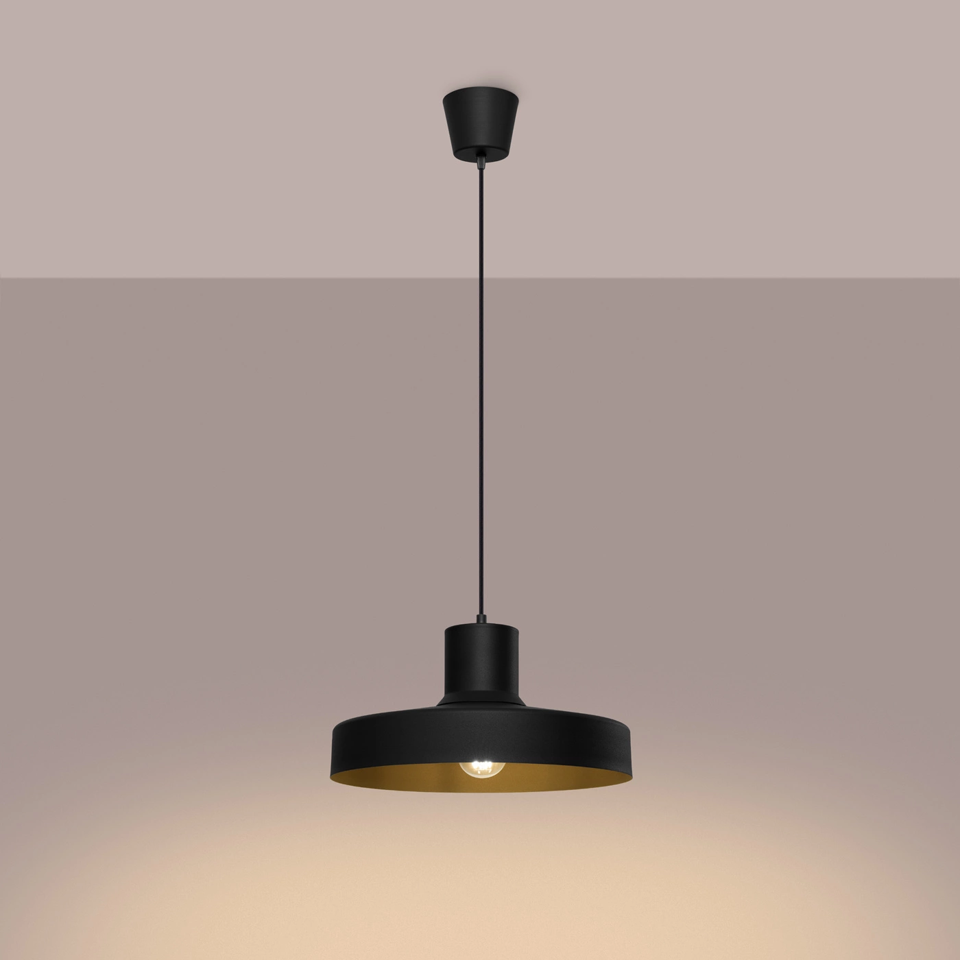 Lampa wisząca BILO marki SOLLUX LIGHTING to nowoczesna propozycja oświetlenia o średnicy 35 cm, wykonana z trwałego, matowego metalu w głębokim czarnym kolorze. Jej uniwersalny, okrągły kształt i minimalistyczny design doskonale wpisują się w stylistykę nowoczesną oraz japandi, podkreślając charakter wnętrz takich jak salon, kuchnia, sypialnia czy przedpokój. Dzięki oprawie na żarówkę E27 możesz łatwo dopasować moc i barwę światła do indywidualnych potrzeb.