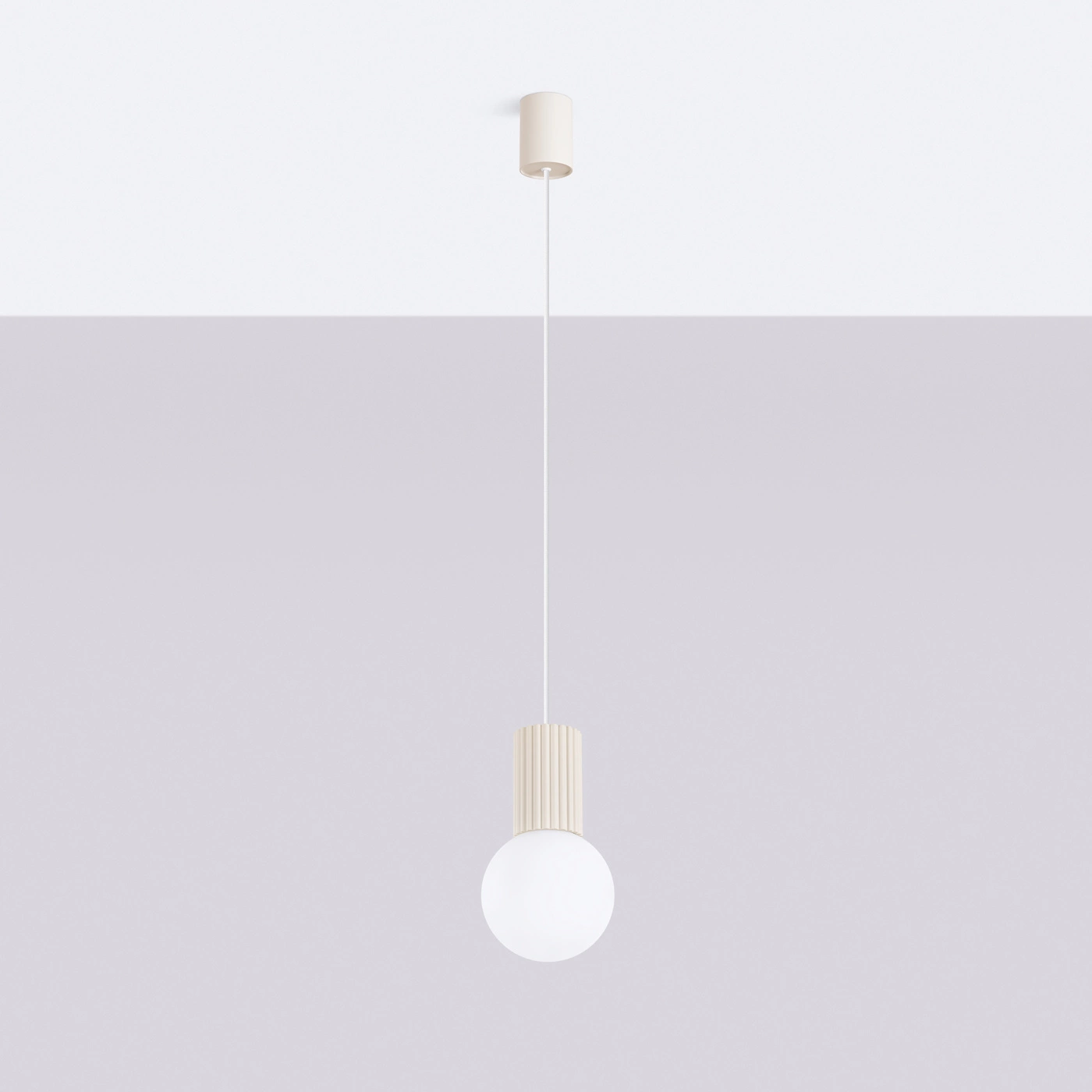 Lampa wisząca kula w kolorze beżowym to wybór dla miłośników nowoczesnych, ale przytulnych wnętrz. Jej delikatna forma i matowe szkło łagodnie rozpraszają światło, tworząc przyjemną atmosferę sprzyjającą relaksowi. Model HALO 1 wpisuje się w popularny styl japandi, łącząc skandynawską prostotę z japońską harmonią. Dzięki okrągłemu kształtowi i subtelnym proporcjom (12×12×120 cm), lampa doskonale prezentuje się zarówno jako pojedynczy żyrandol do salonu, jak i elegancka lampa do sypialni lub nad wyspę w kuchni.