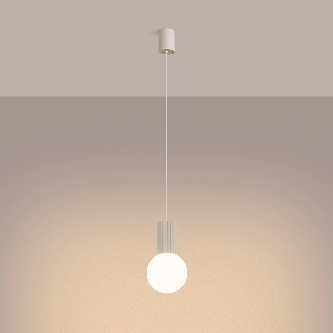 Lampa wisząca HALO 1 marki SOLLUX LIGHTING to okrągła, beżowa kula o wysokości 120 cm, wykonana ze szkła i aluminium. Jej minimalistyczny, nowoczesny design harmonijnie łączy subtelność jasnego koloru z eleganckim wykończeniem, tworząc wyjątkowe oświetlenie do salonu, sypialni, kuchni czy przedpokoju. Pojedyncze źródło światła pozwala uzyskać nastrojowy efekt, idealny zarówno nad stołem, jak i w roli dekoracyjnego akcentu w Twoim domu.