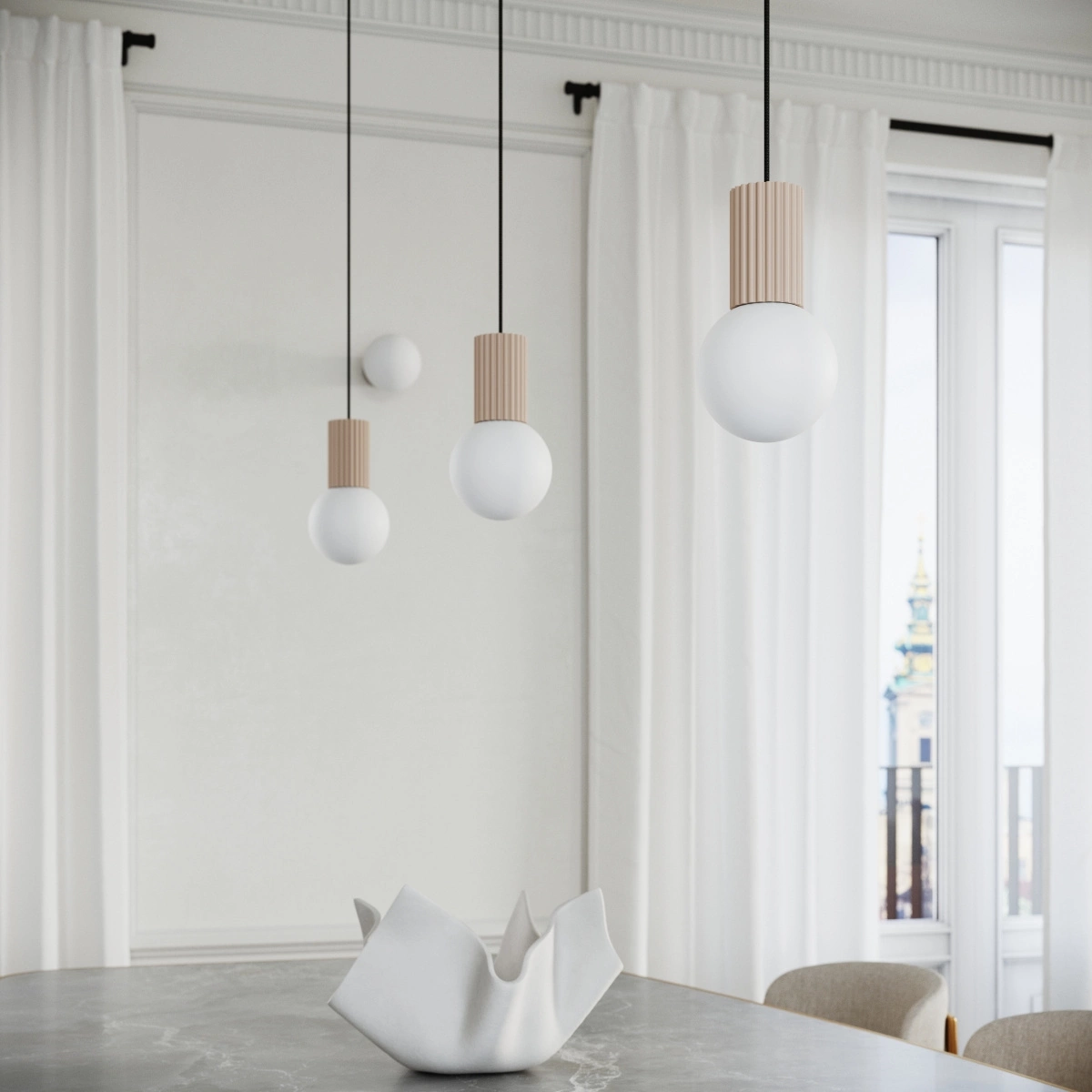 Lampa wisząca HALO 3P beżowa została zaprojektowana z myślą o miłośnikach prostoty i harmonii. Jej okrągłe, mleczne klosze pięknie rozpraszają światło, tworząc nastrojowy klimat zarówno podczas rodzinnych kolacji, jak i wieczornego relaksu w salonie. Beżowy kolor wprowadza do wnętrza ciepło i lekkość, a nowoczesna forma doskonale wpisuje się w modny styl japandi, łączący japońską elegancję z nordycką przytulnością.