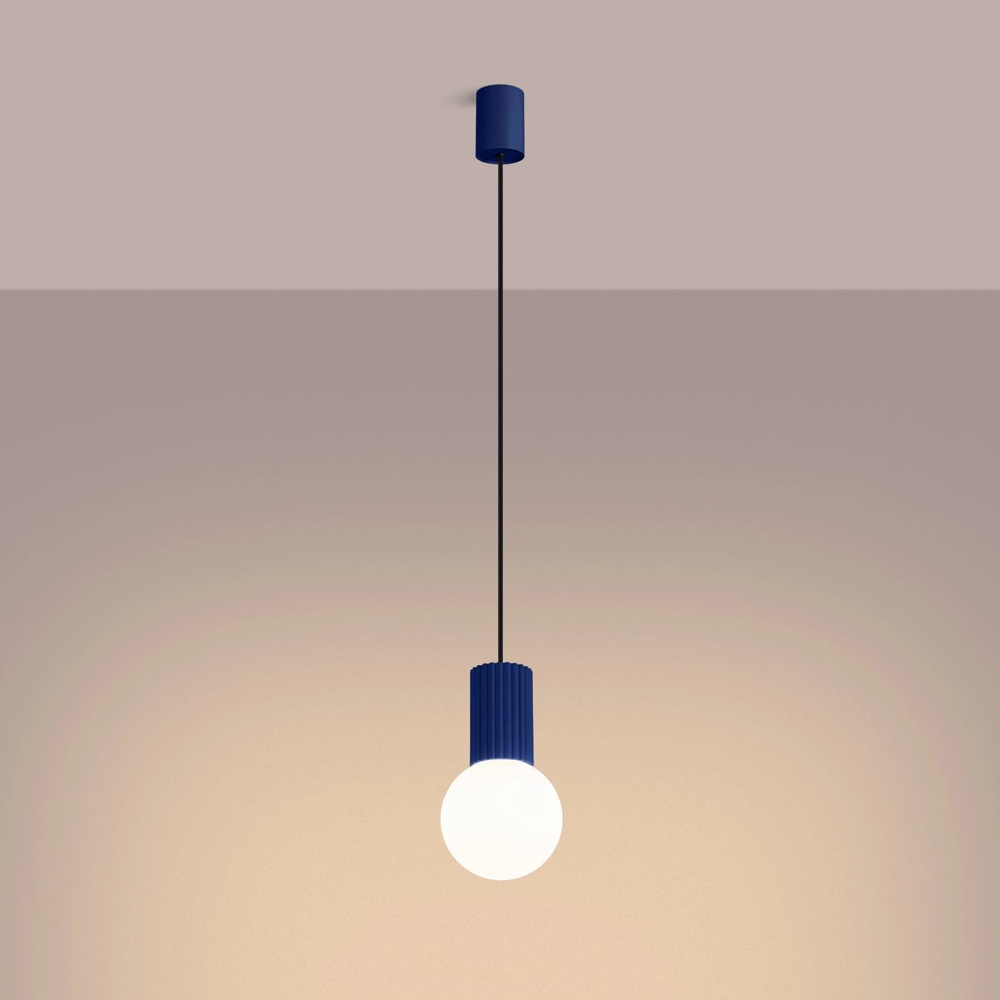 Lampa wisząca kula HALO 1 ultramaryna marki SOLLUX LIGHTING to esencja nowoczesnego designu, zamknięta w eleganckiej formie o wymiarach 12×120 cm. Połączenie wytrzymałego aluminium z matowym szkłem tworzy wyrazisty, okrągły klosz, który przyciąga wzrok intensywnym niebieskim kolorem. To wyjątkowa propozycja dla osób, które chcą podkreślić charakter salonu, sypialni lub kuchni, łącząc funkcjonalność z estetyką w duchu stylu japandi.